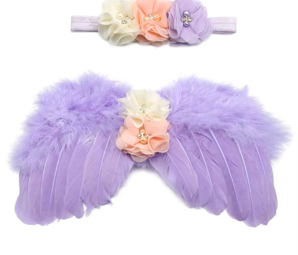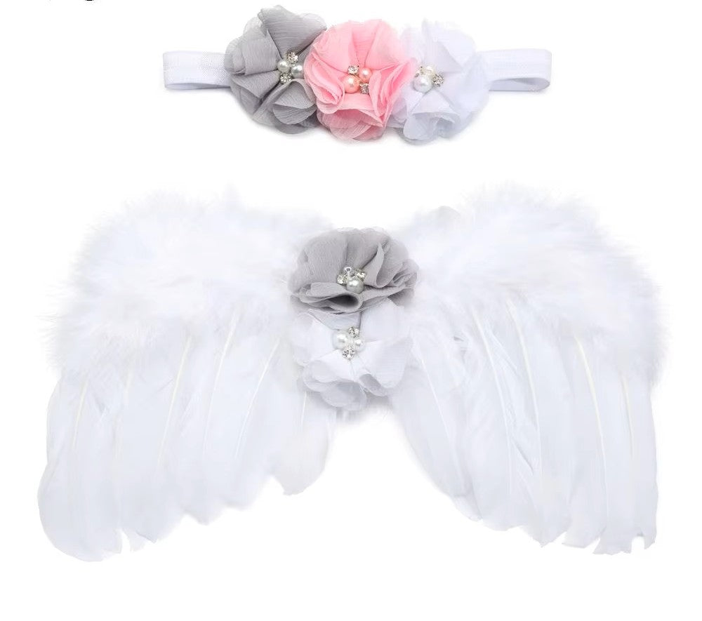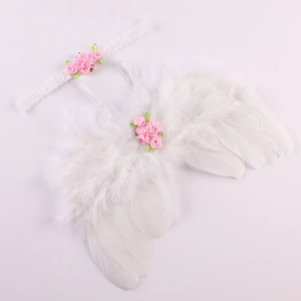 Capture timeless moments with this adorable 2-piece baby photography set. Featuring delicate angel feather wings and a charming rose flower headband, this outfit is perfect for newborn photo shoots, baby announcements, or milestone pictures.