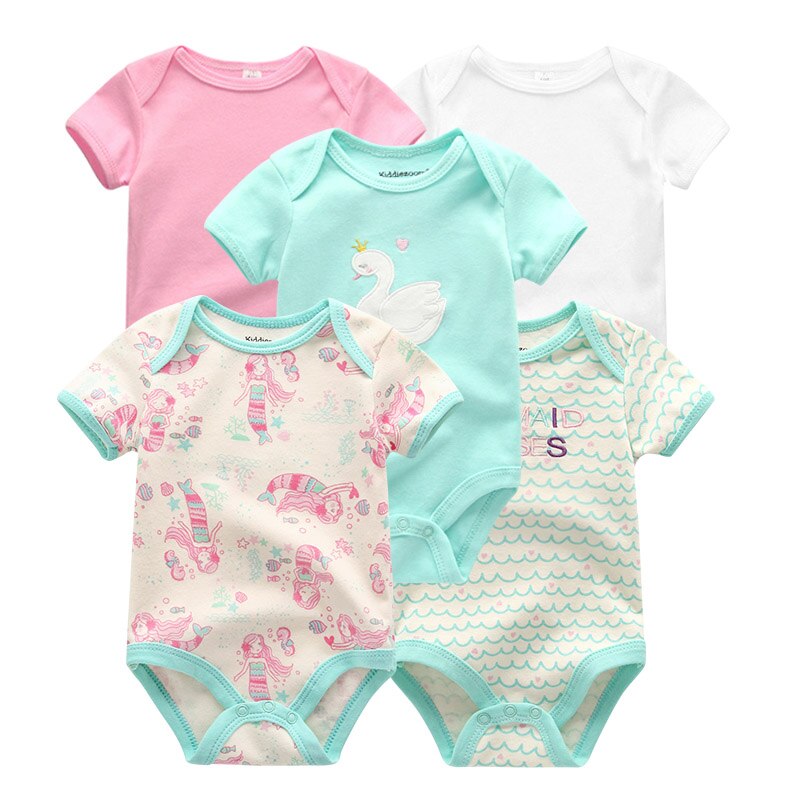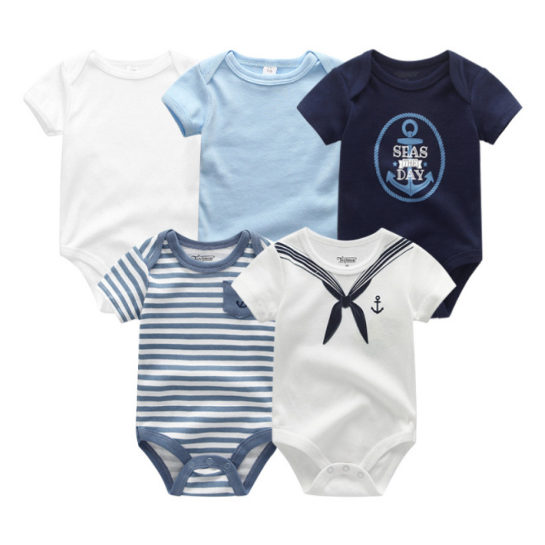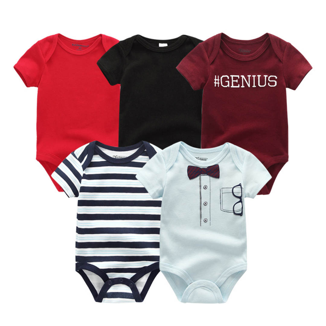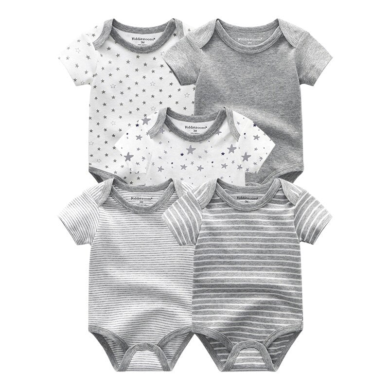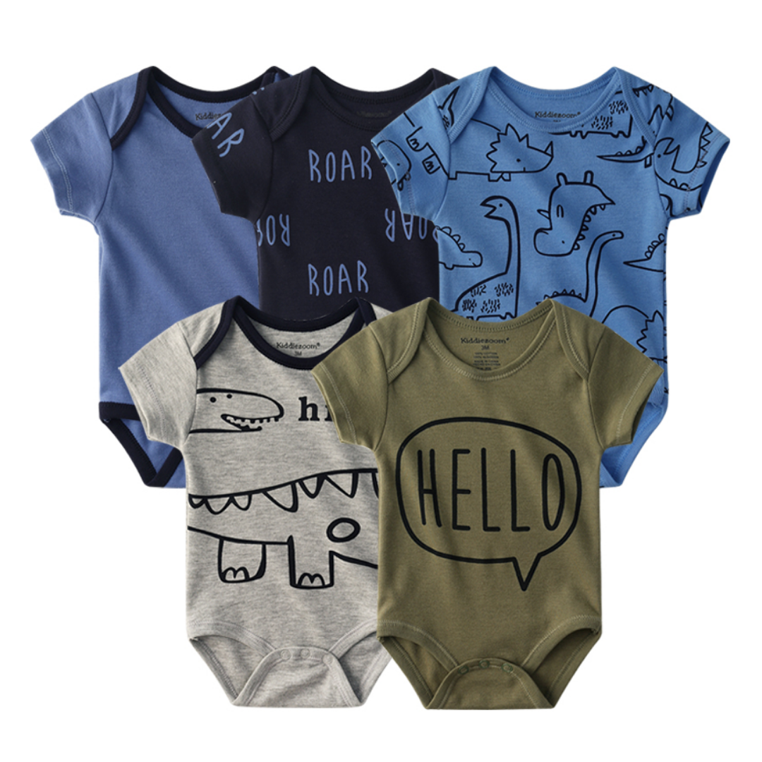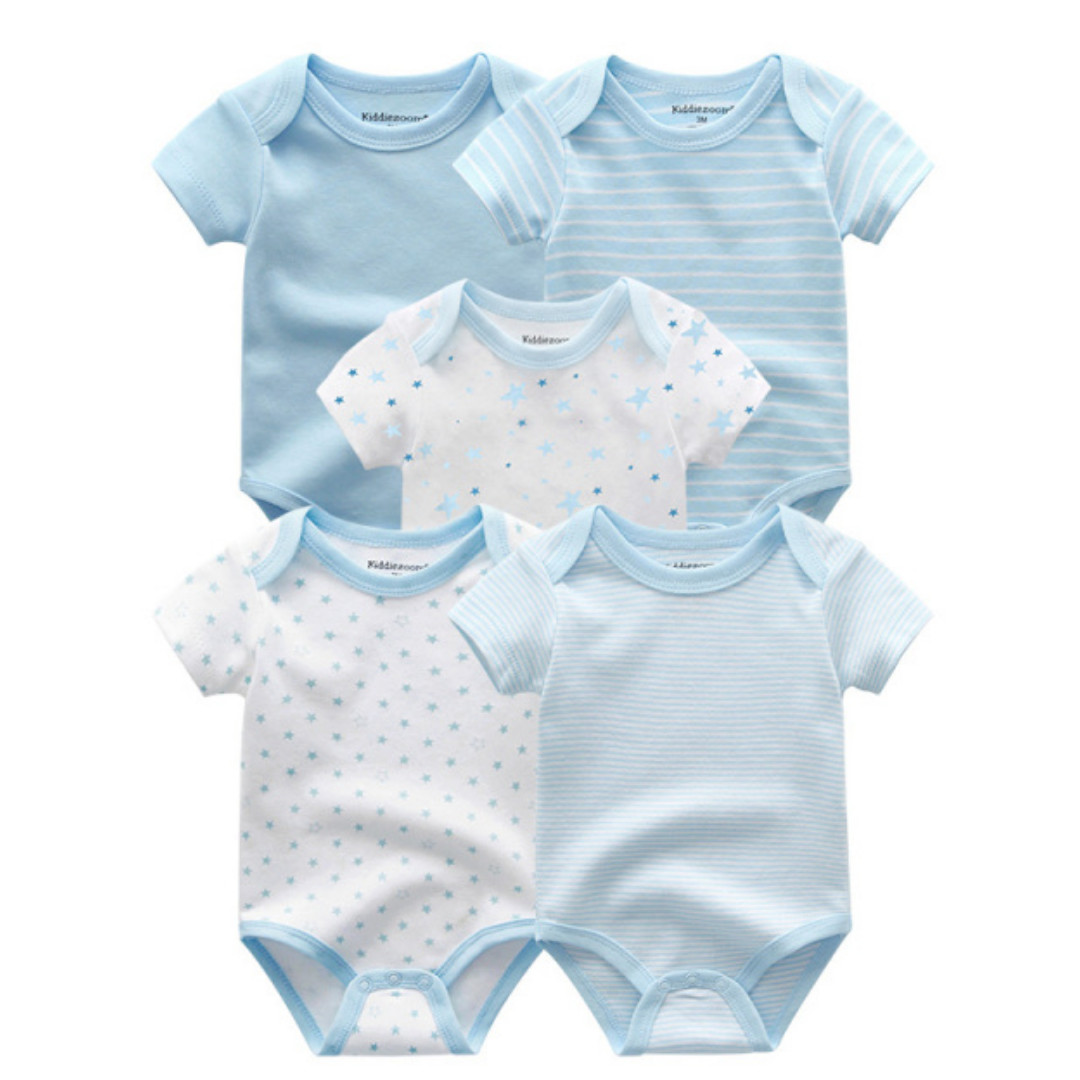 5 Pcs Bundle Plain and Printed Soft Cotton Baby Boy Short Sleeve Onesies