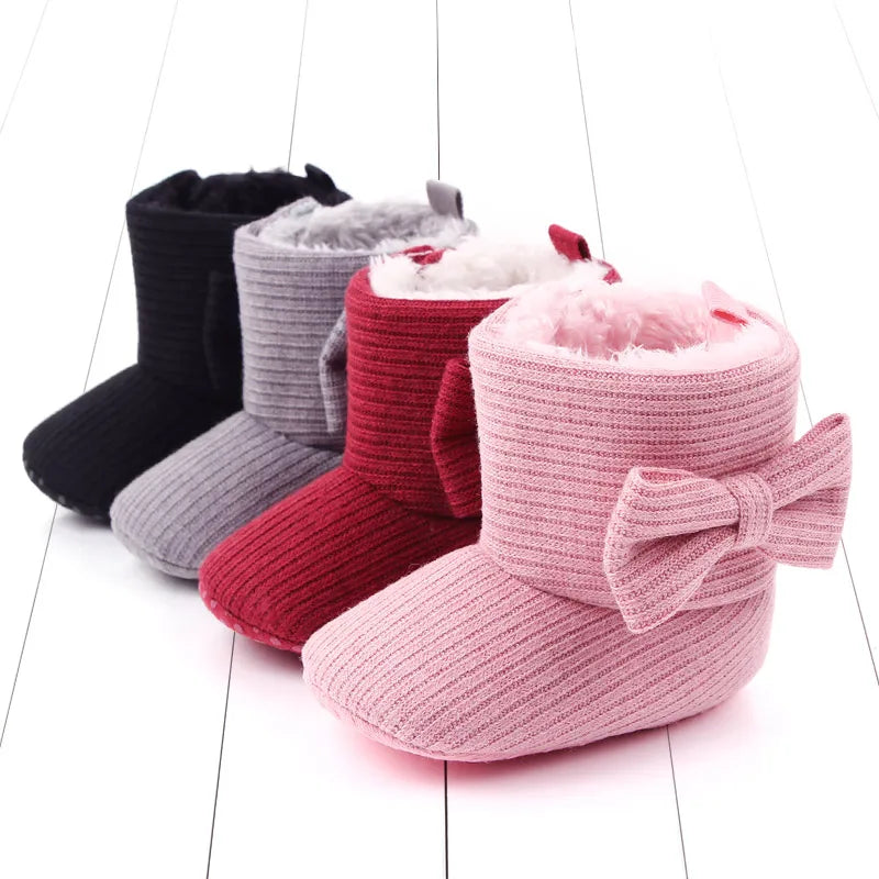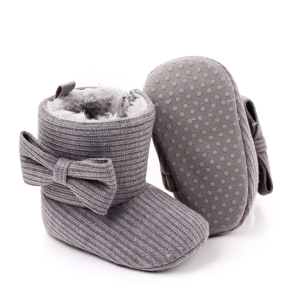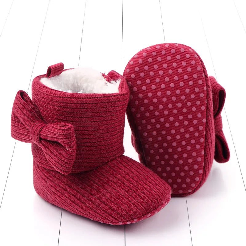 Step into style and comfort with our Baby Bowknot Ankle Boots. These adorable shoes are designed for your little one's first steps, combining fashion and functionality for a delightful winter wardrobe addition.