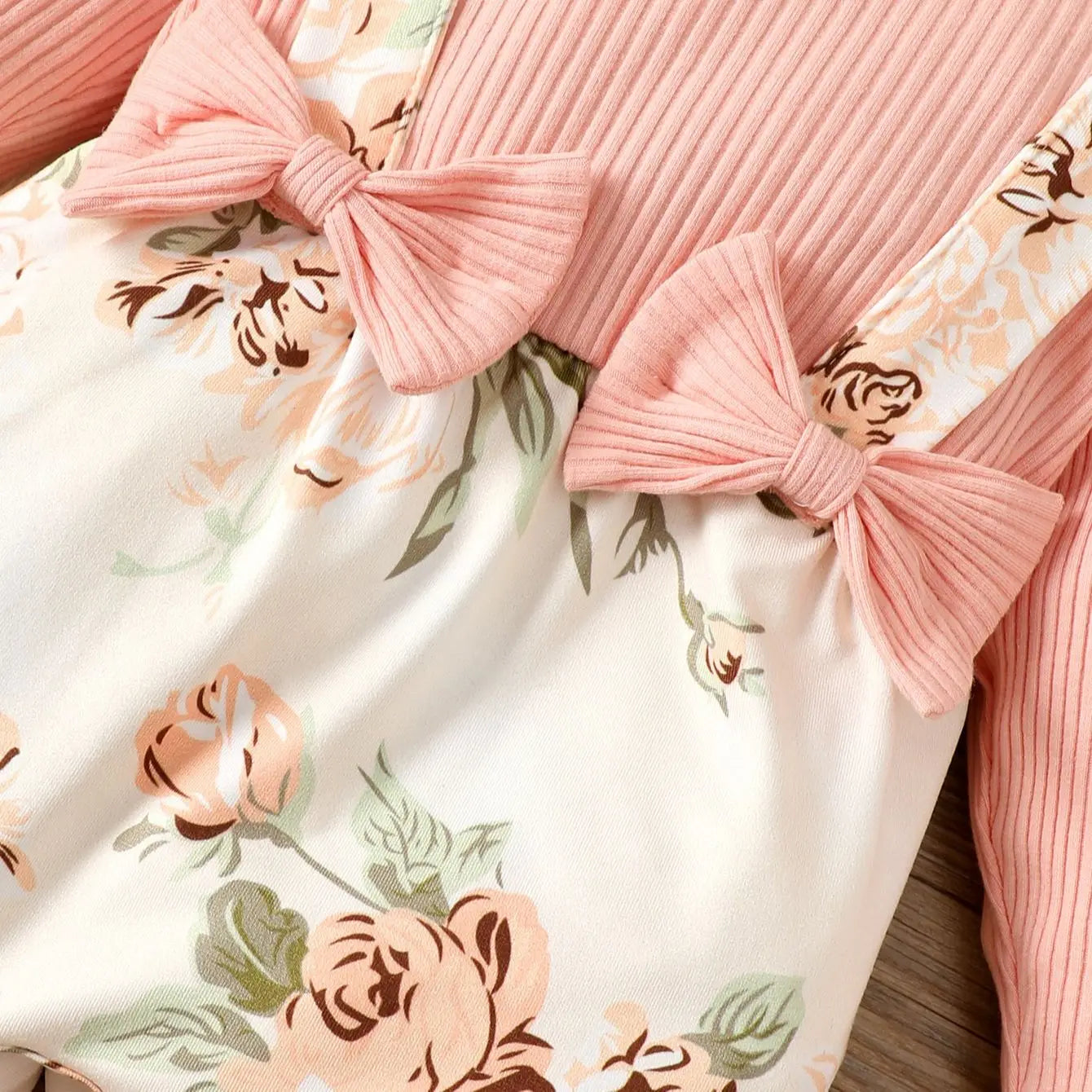 Make your baby girl's spring and autumn wardrobe special with our Pink Flower Print One-Piece Set. Whether it's a family outing or a day at the park, this set ensures your little one stays cute and comfy.