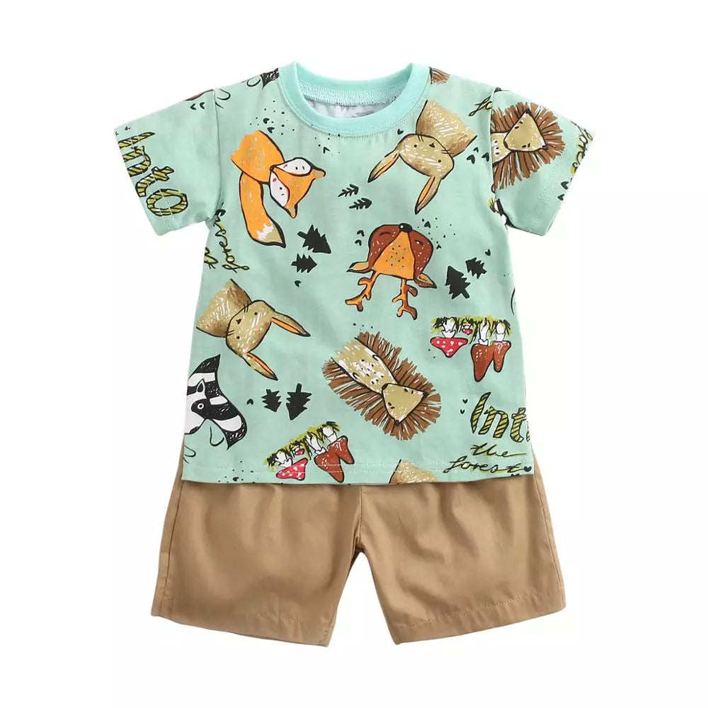 Introducing the Adorable Cartoon Boys Clothing Set: Short Sleeve Cotton Tops + Shorts