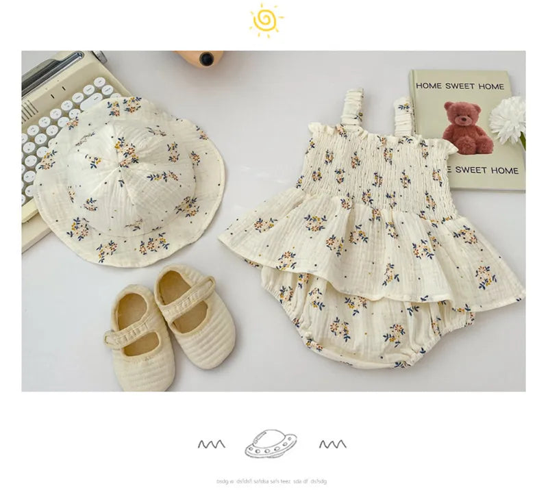 Floral Baby Bodysuit - Linen Breathable Infant Clothing