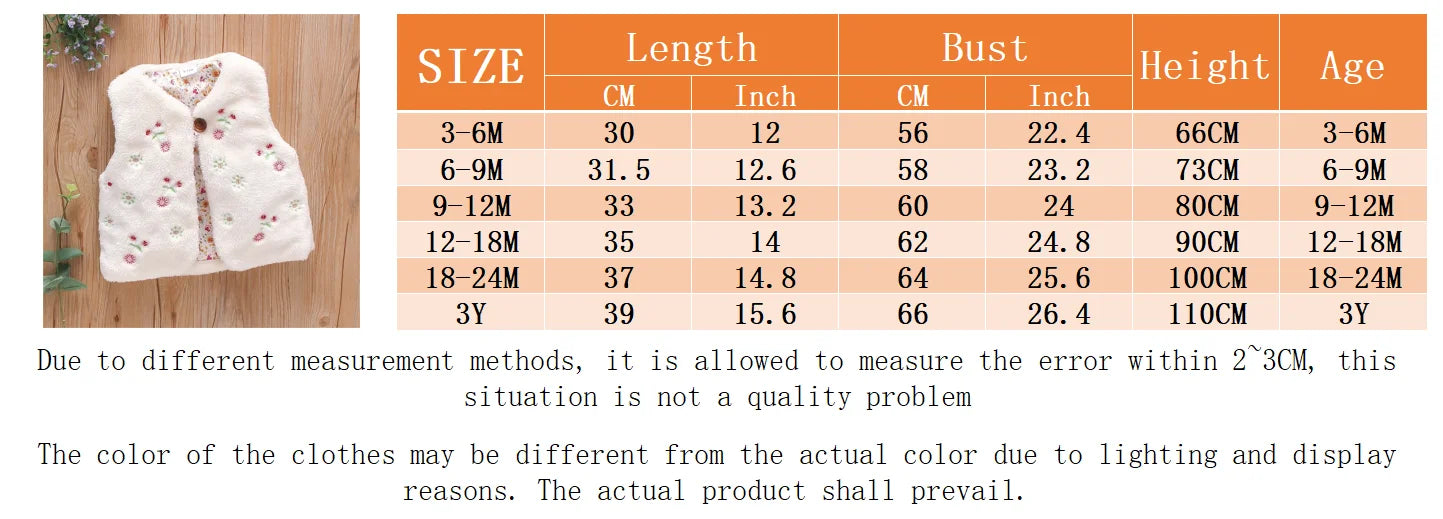eet Flower Embroidery Sleeveless Warm Fashion Coat 0-3 Year Old Lady Wear Top