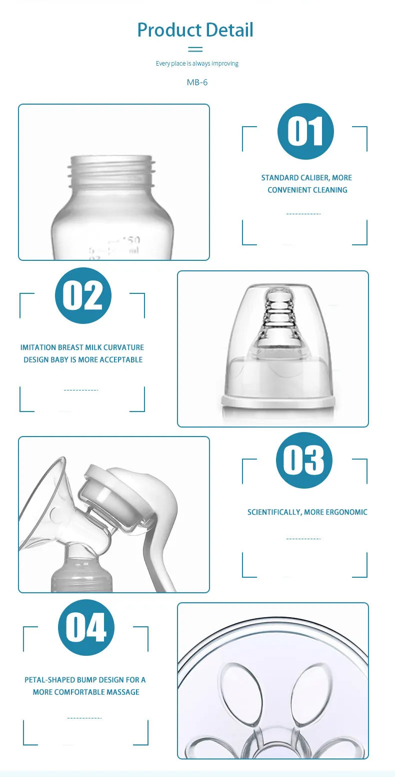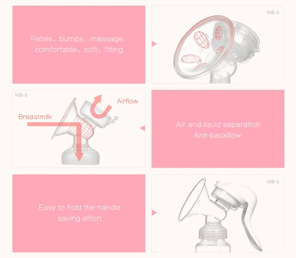 Ergonomic Handle: This breast pump is ergonomically designed for easy operation, reducing hand and wrist fatigue during breastfeeding.