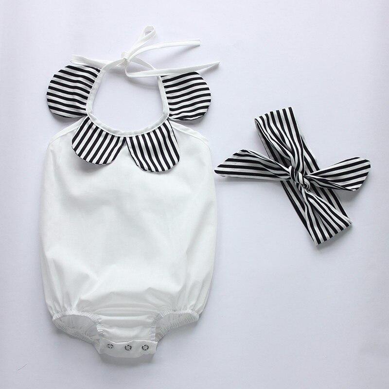 Monochrome Stripes Romper Outfit blends together simplicity and style with the classic colors of black and white. The outfit transforms a basic romper into fashionable clothing set with its matching accessories.