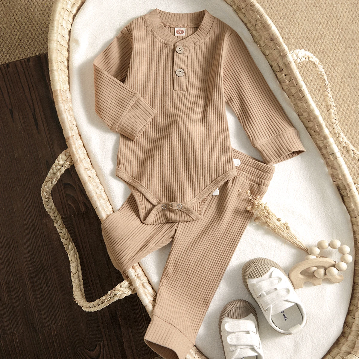 Introducing the Cozy Newborn Knit Baby Clothes Set: Long Sleeve Button Romper Pants (0-24M)