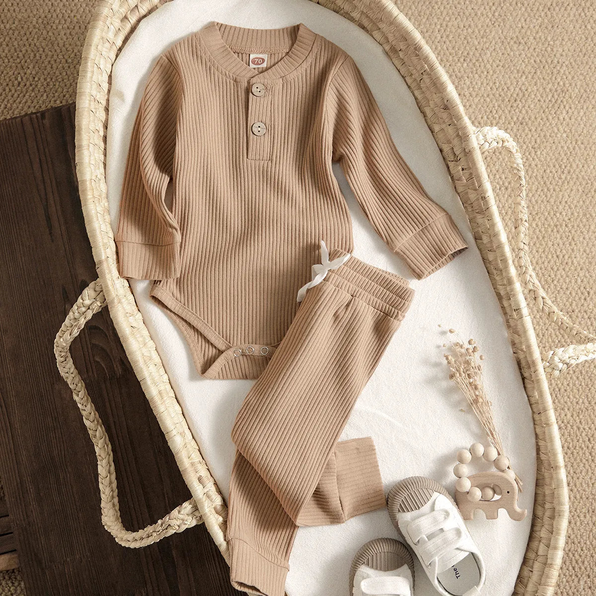 Elevate your baby's wardrobe with the Ma&Baby Newborn Knit Baby Clothes Set, featuring a long sleeve button romper and pants designed for newborns to 24-month-olds. This charming ensemble is crafted with care, combining comfort, style, and ease for your little bundle of joy.