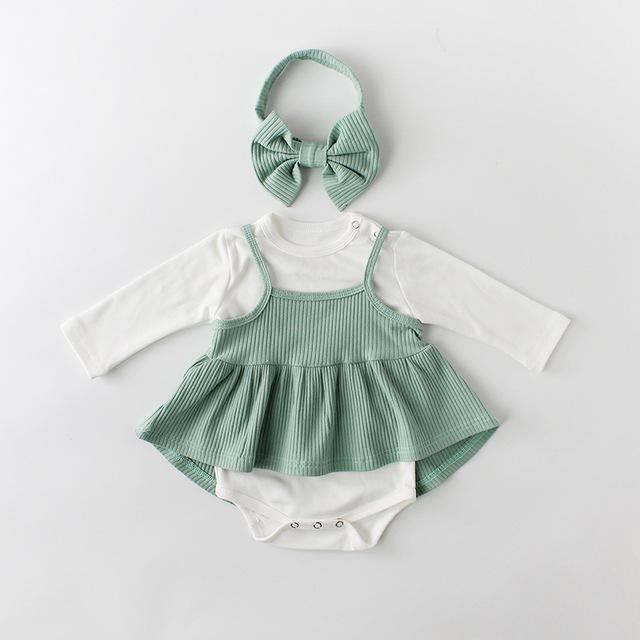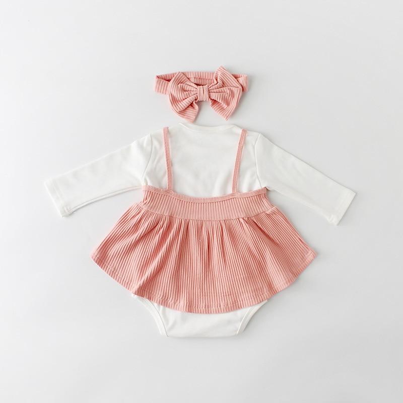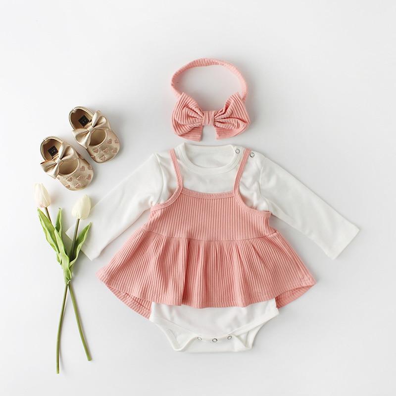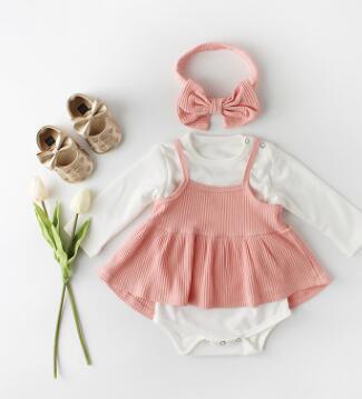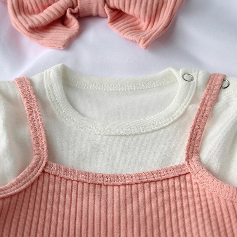 Spring is a season where children like to be free from sweaters and jackets. Romper with the Striped Strap Dress makes little girls delightful who like to doll up for a stroll in the park or simply laze around in the crib. The cotton-made fabric is super comfortable and breathable, so the kid can enjoy a soft pleasant spring breeze. The snap buttons of the romper make diaper changes easy and fast. The plain romper combined with the striped strap dress makes it a trendy attire. The matching headband adds more style to the outfit.