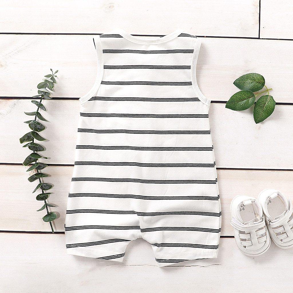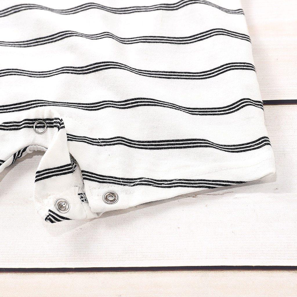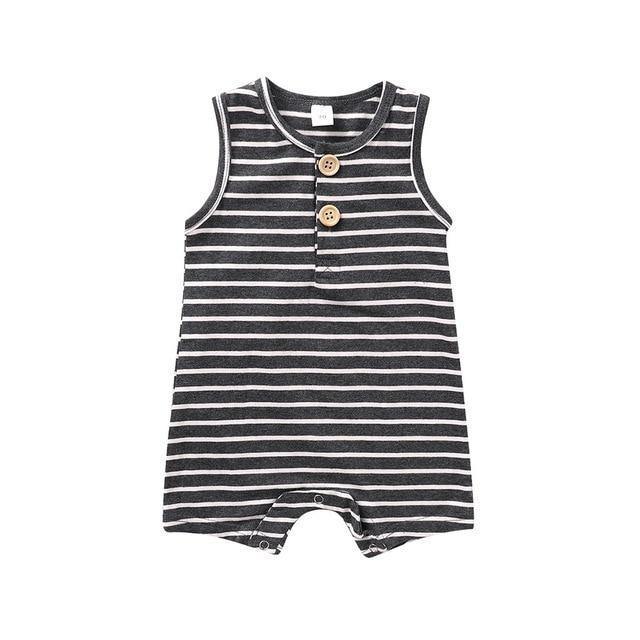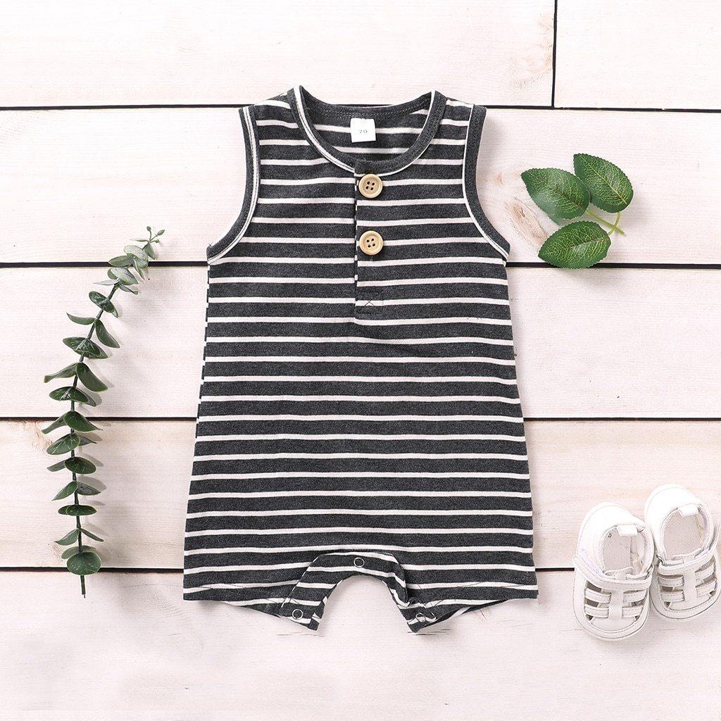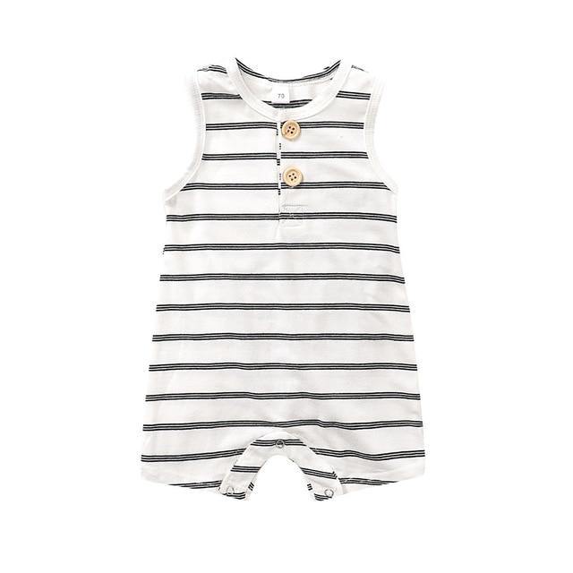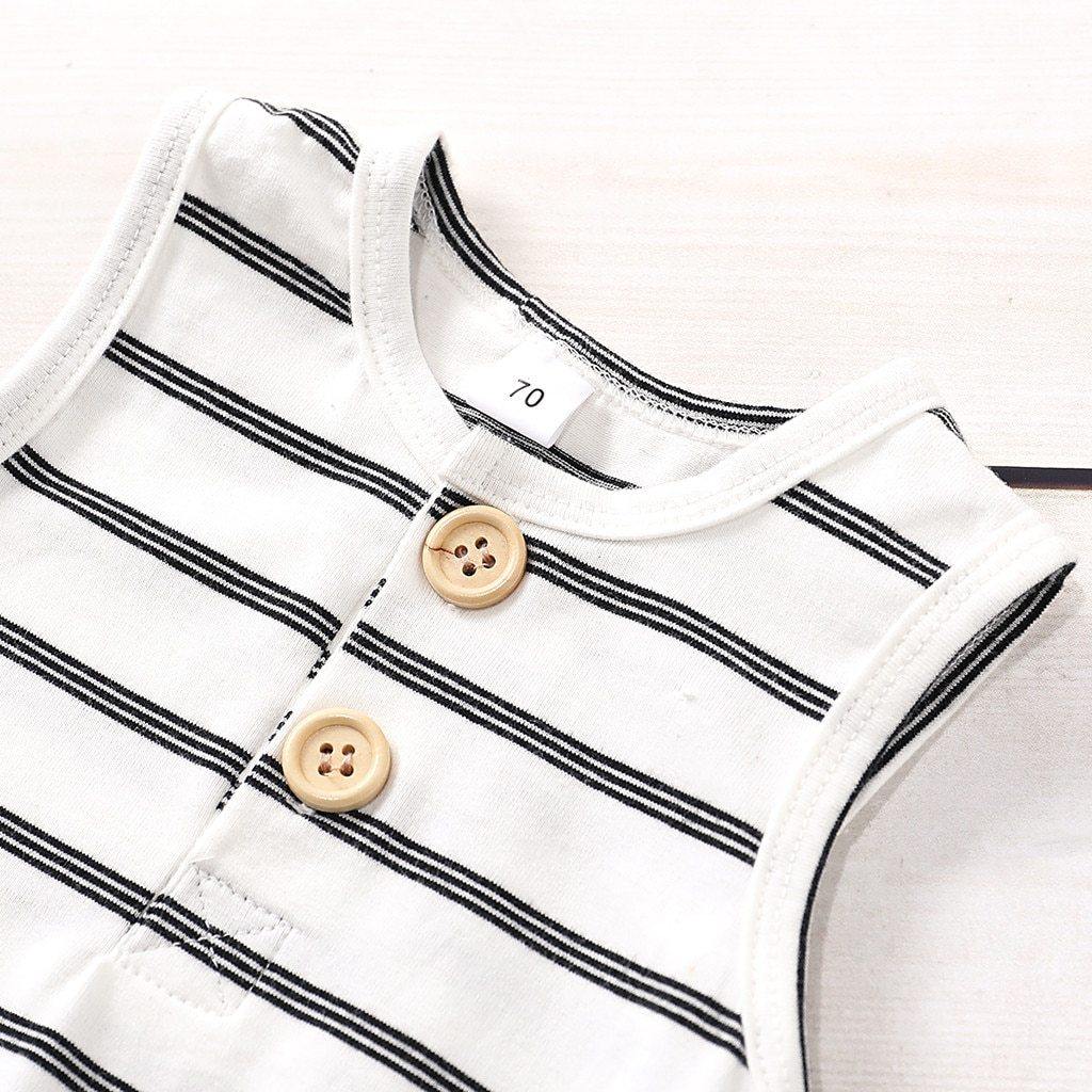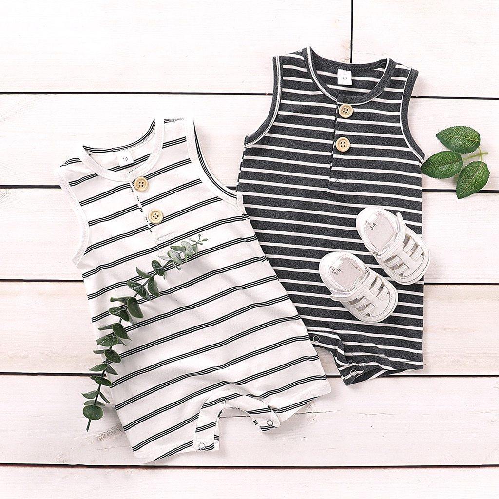 Sleeveless Striped Romper for summer is a staple outfit for your baby’s closet. It has the classic color combination of black and white. The loose fit of the romper and the sleeveless design allows the baby to move freely. The fabric is a cotton blend, which is comfortable to wear and has a soft touch to the baby’s sensitive skin. The snap buttons that help in quick diaper changes. It is most ideal for summer wear, however, the outfit can serve as an inner bodysuit to be worn under sweaters or jackets in winters as well.