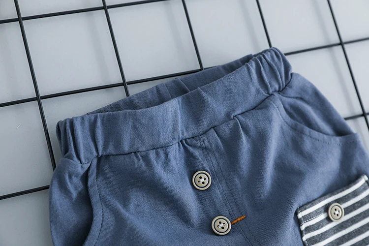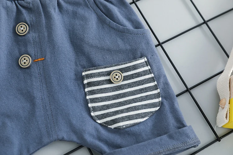 The elastic waistband conveniently adjusts according to the size of the baby. The striped pocket and the obvious buttons look fashionable.