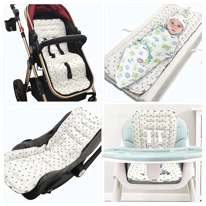 Soft Cotton Baby Stroller Cushion – Breathable, Reversible Seat Liner for Infants – Universal Fit for Strollers, Car Seats & More