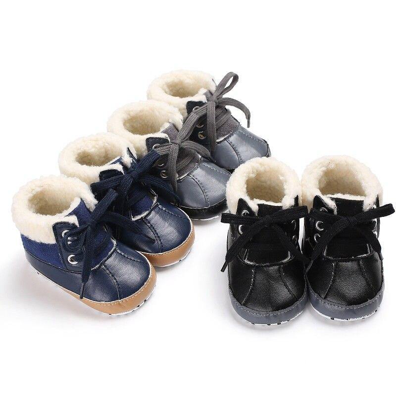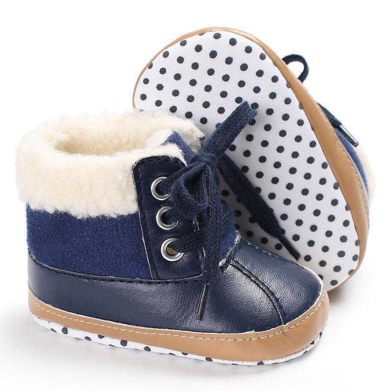 Our indulgent and flexible sole soft shoes give little feet amazing comfort and lots of wriggle room. It has a fluffy lining to keep out the cold from little baby feet and it looks super stylish too for the little one's style statement. The laces on the shoes give it a charming look.