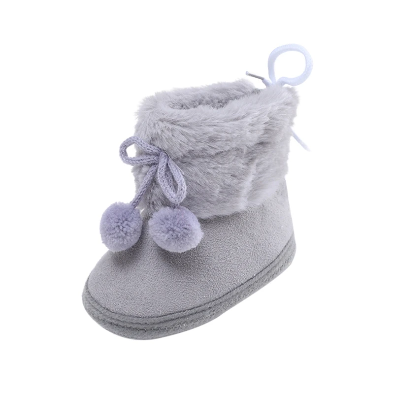 - Winter Wonderland Fashion: Tailored for the winter season, these boots are a must-have accessory for your baby girl. The enchanting fluff ball booties add a playful touch, transforming every step into a magical adventure.