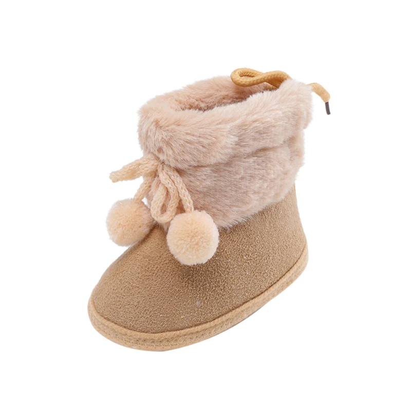 Introducing Our Winter Snow Baby Boots: Soft Sole Comfort with Fluff Ball Booties