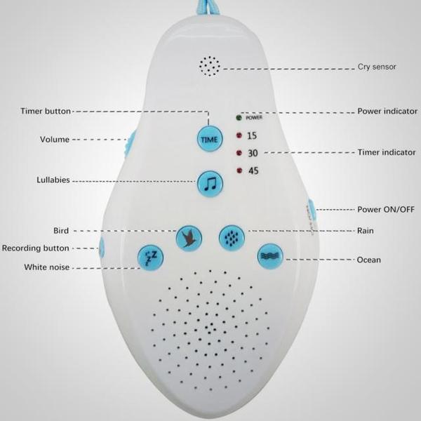 This baby sleep soother has 8 comforting sounds and turns on automatically at the sound of your baby's cry for pleasant relaxation and deep sleep.