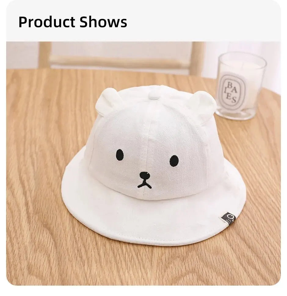 Elevate your child's summer style with our adorable Cute Bear Baby Bucket Hat. Crafted from soft cotton and featuring a charming bear design with cute ears, this hat is perfect for keeping your little one stylish and comfortable during outdoor summer adventures.