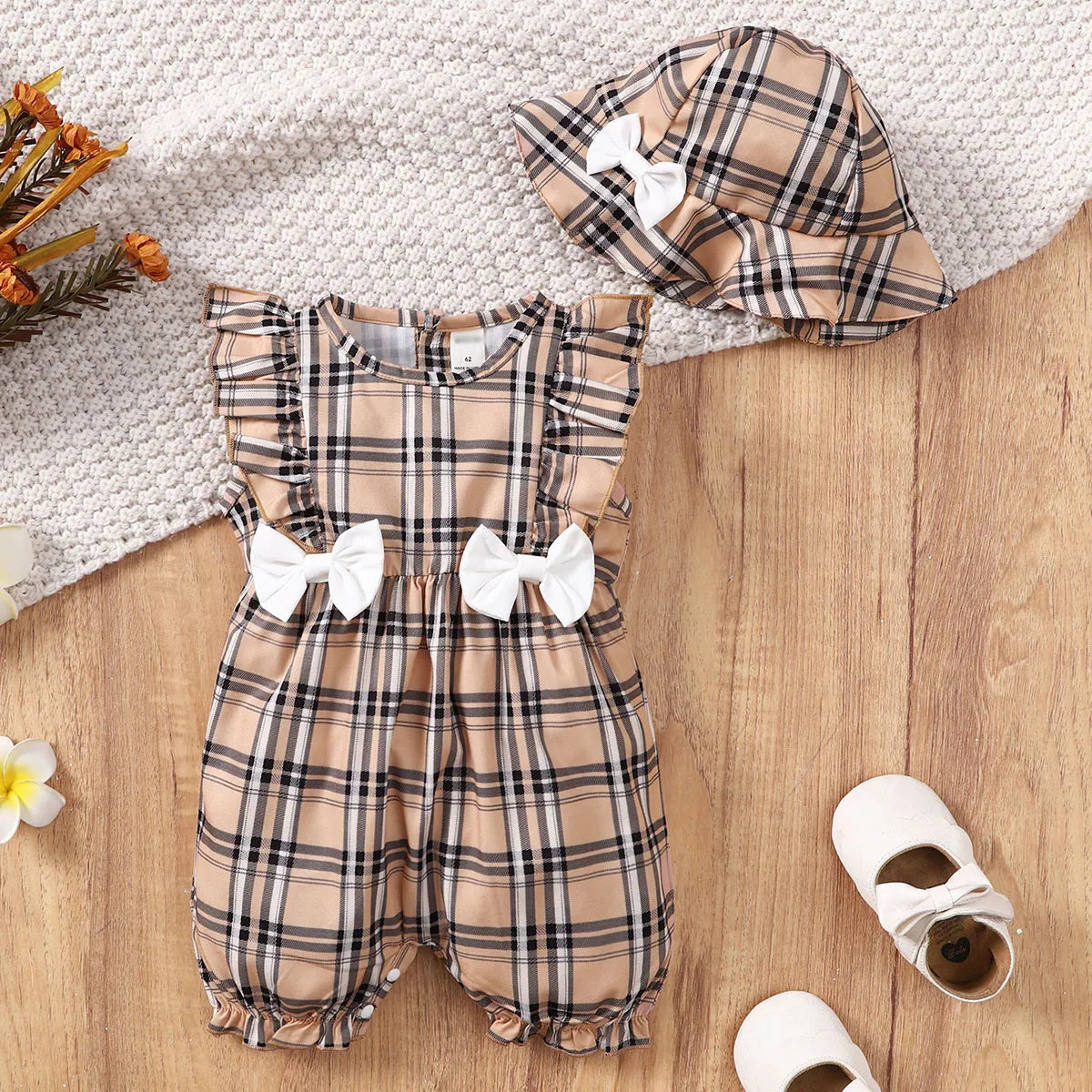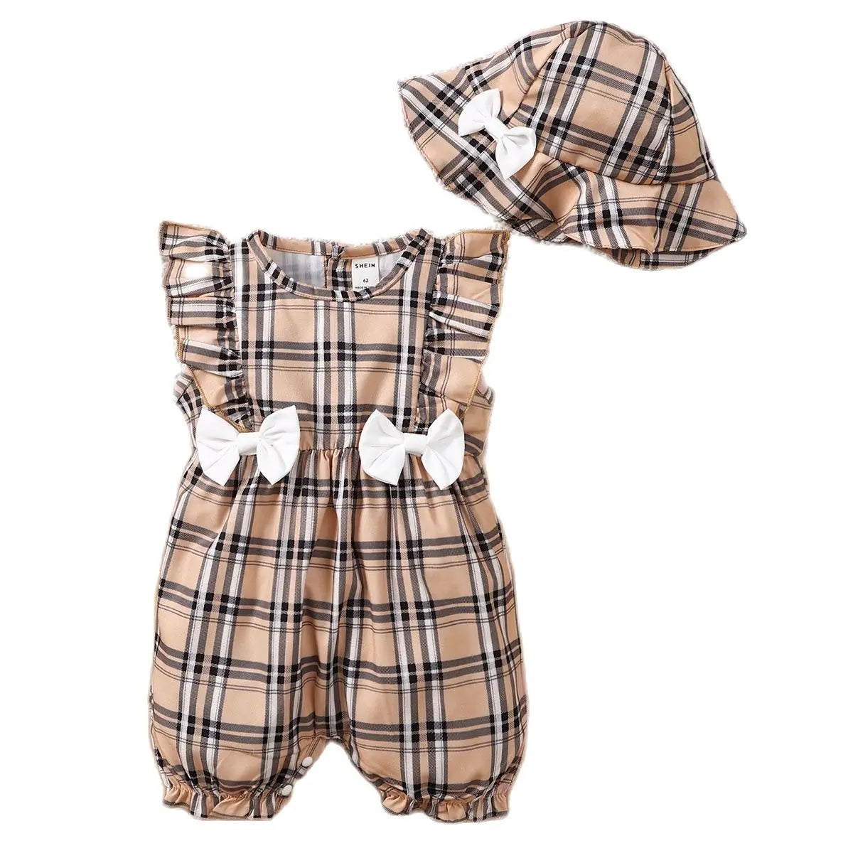 Cute Plaid Summer Romper Set for Newborn Baby Girls