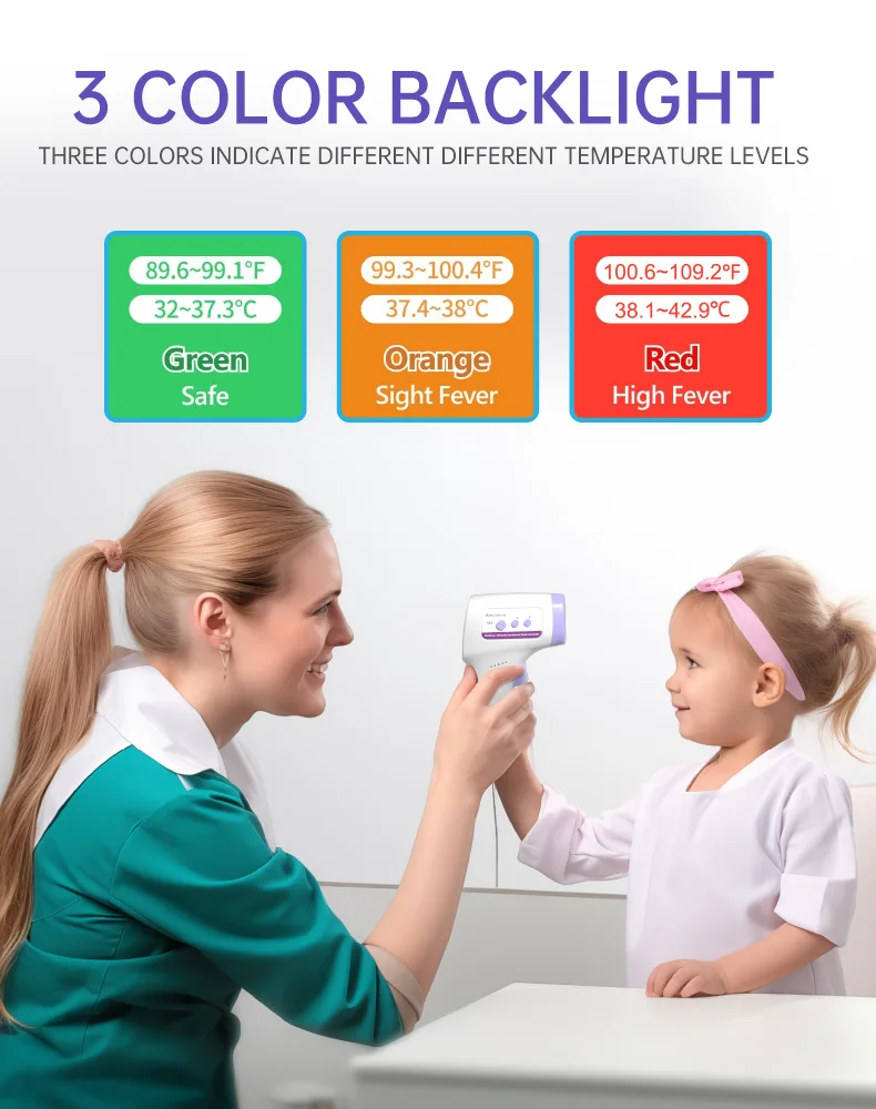✅ Clear LCD Display – Easy-to-read backlit screen with color indicators for fever alerts.