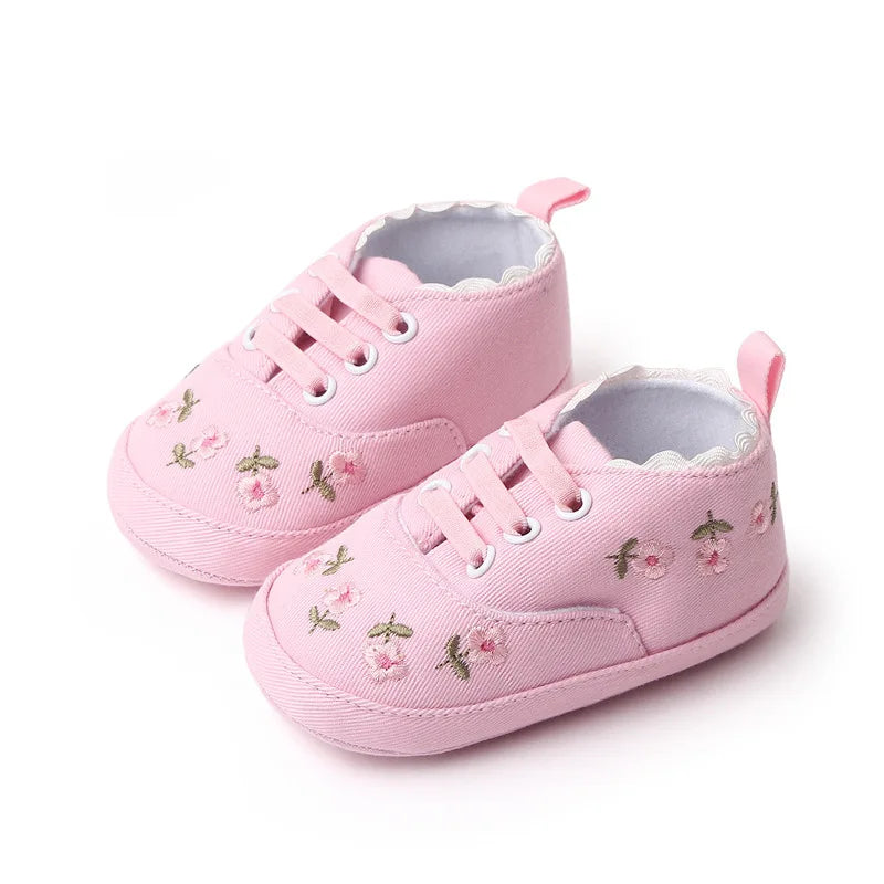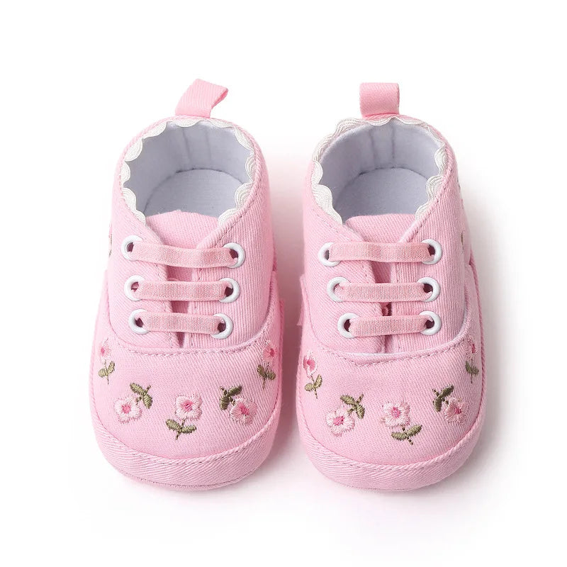 Our Floral Embroidered Baby Girl Soft Shoes redefine style and comfort for your little one. The COTTON outsole ensures a gentle touch on sensitive feet, while the lace-up design adds an extra element of grace.