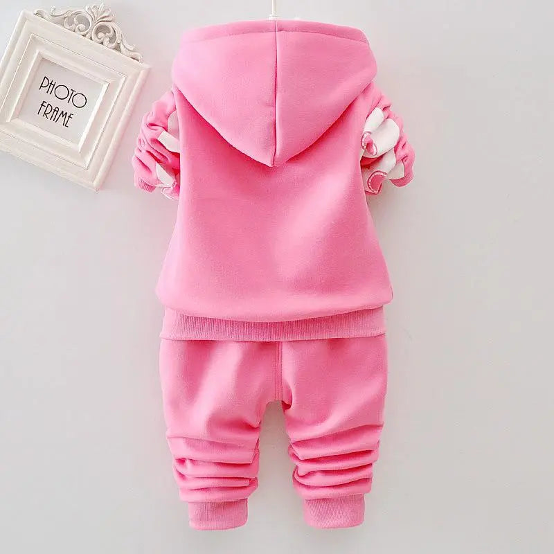 Girls' Flower Cartoon Woolen Hooded Clothing Set - Warm Winter Set