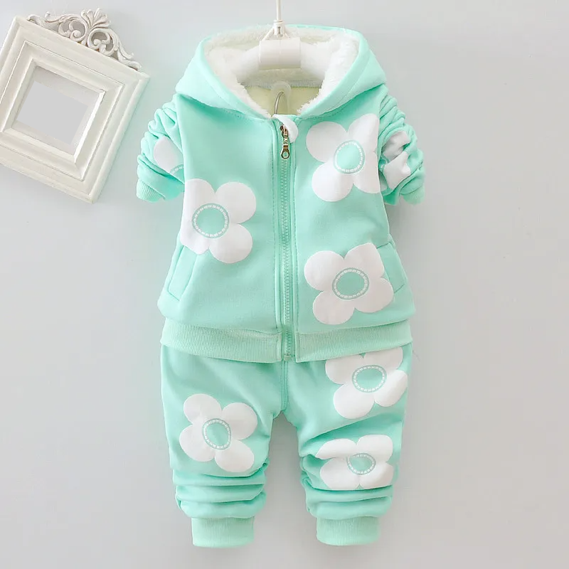 Wrap your baby girl in warmth and style! Shop now for our Girls' Flower Cartoon Woolen Hooded Clothing Set - the perfect Warm Winter Set.