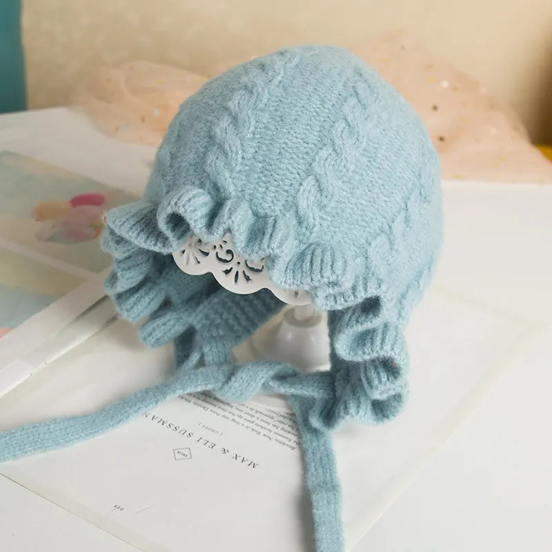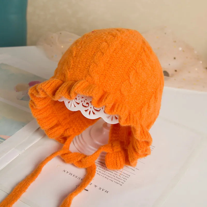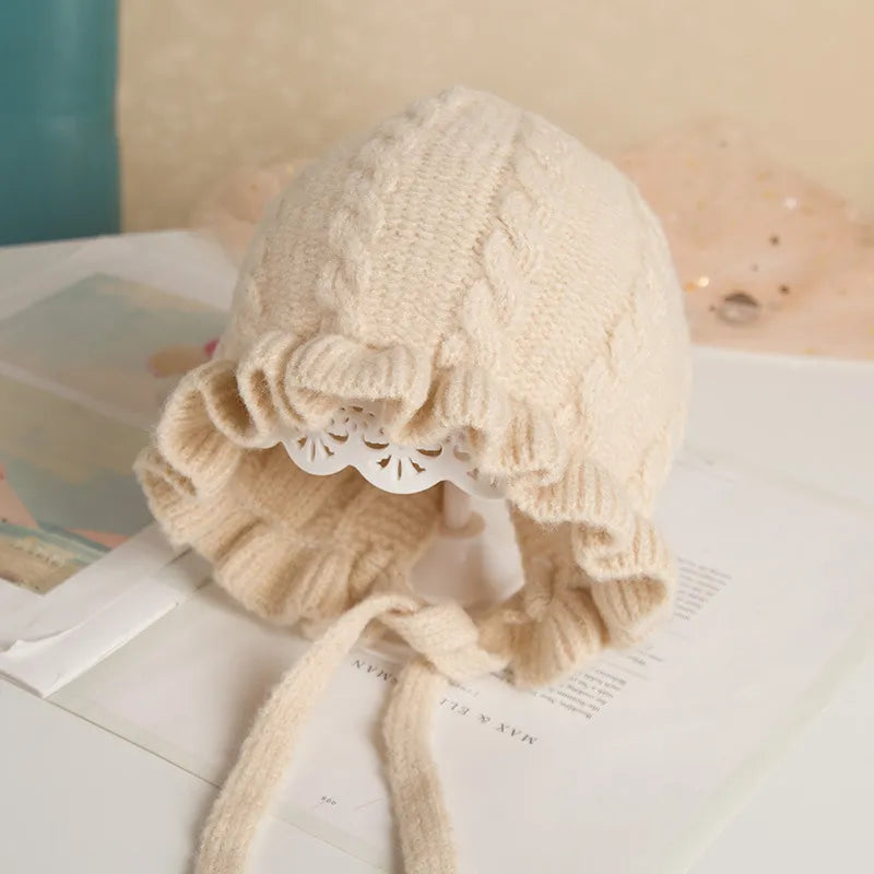 Designed with the utmost attention to detail, this hooded woolen hat is not just a winter accessory; it's a fashion statement for your baby. The cozy and protective hood guarantees to keep your little one's ears warm, while the intricate lace details add a touch of charm.