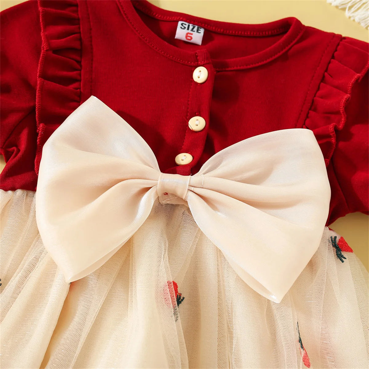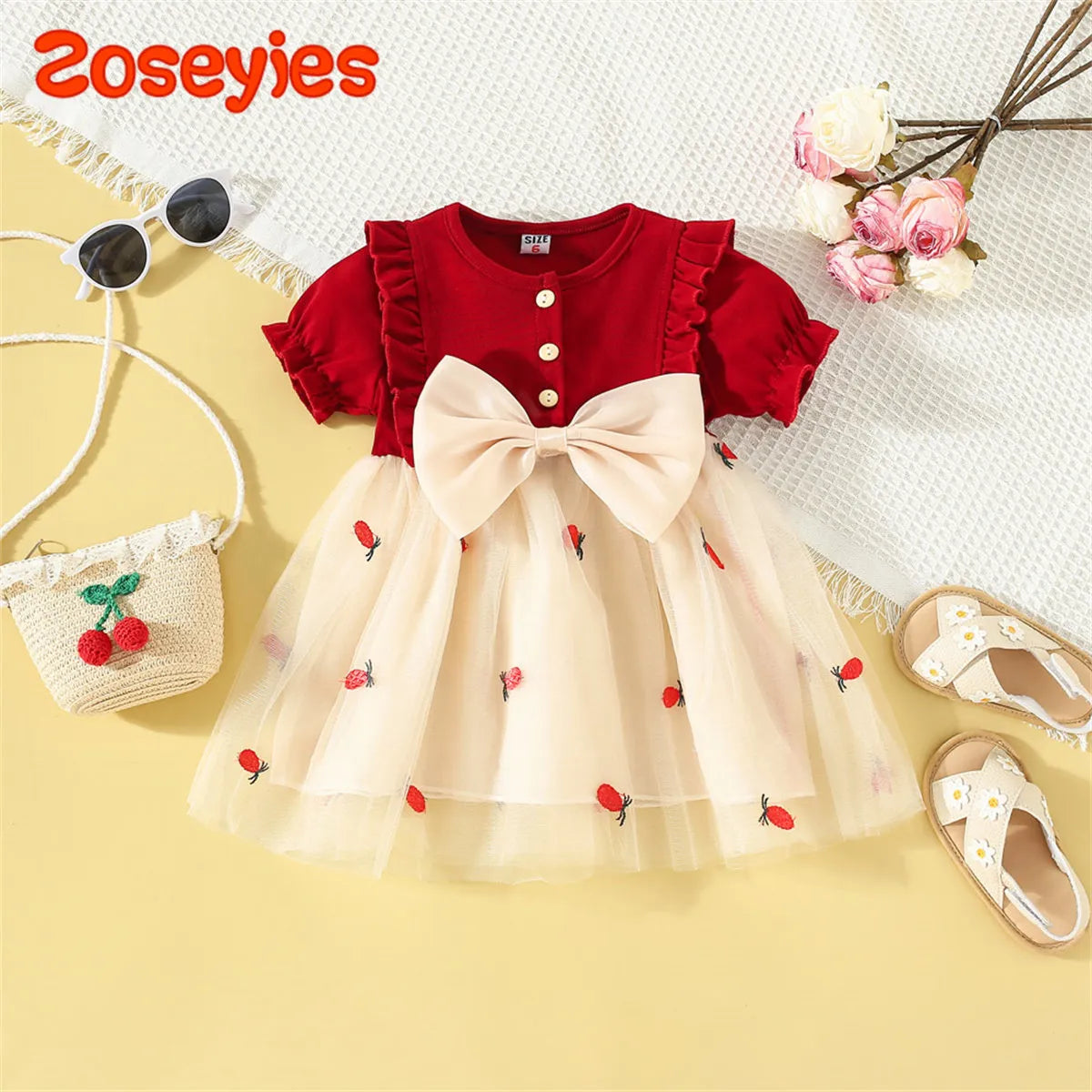 Design: The charming A-line silhouette, adorned with a cute bow decoration, adds an extra touch of sweetness to your baby's wardrobe. The knee-length design is perfect for summer outings.