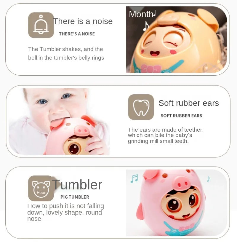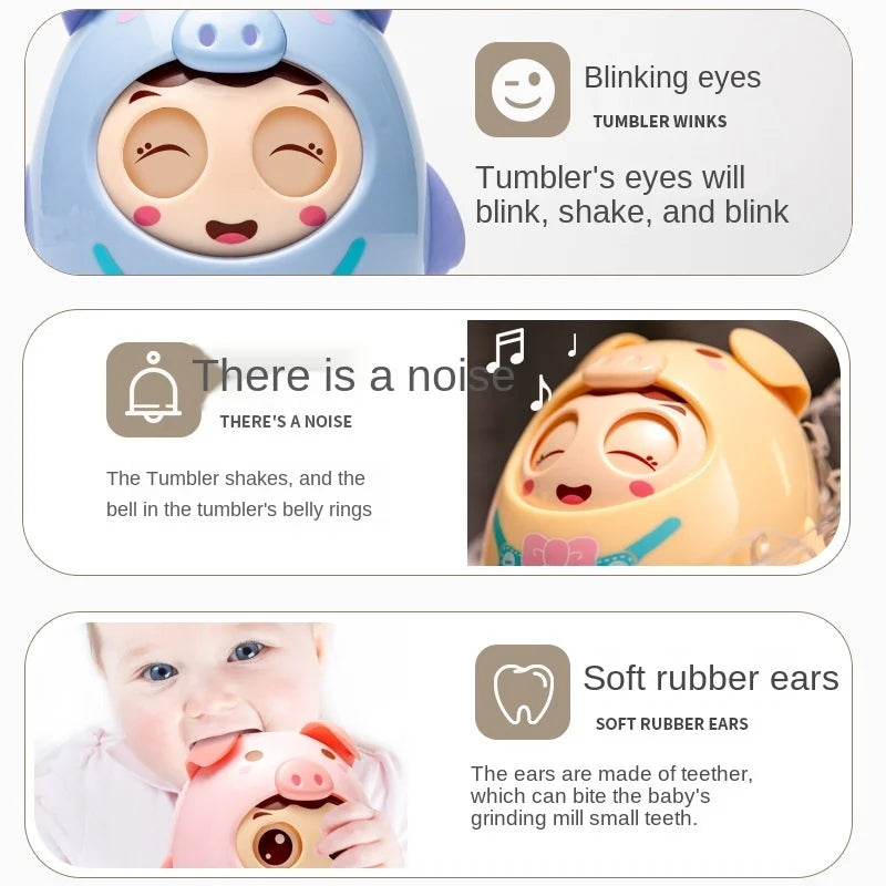 Baby Tumbler Toy: Soft, Educational, Teeth Grinding, Blinking Pigs for Baby Shower