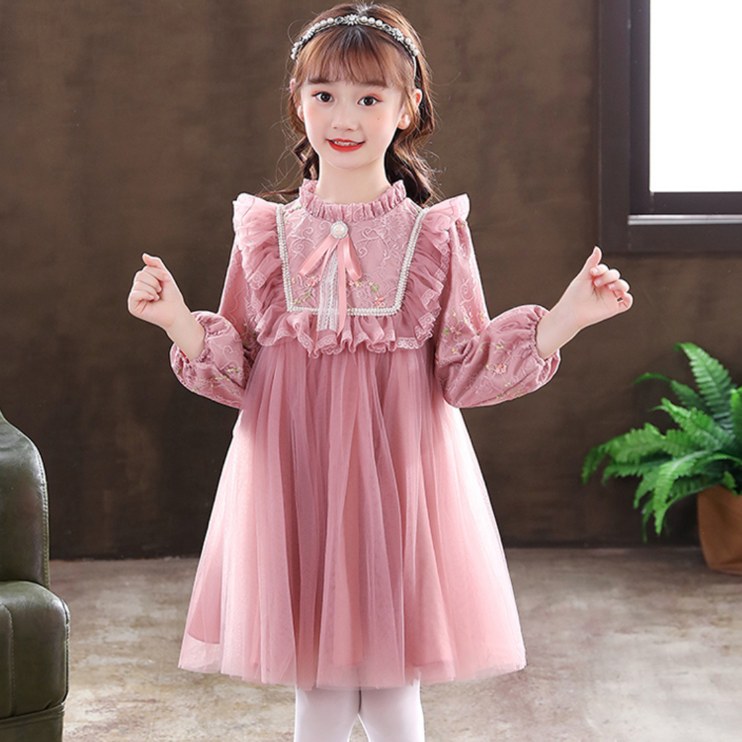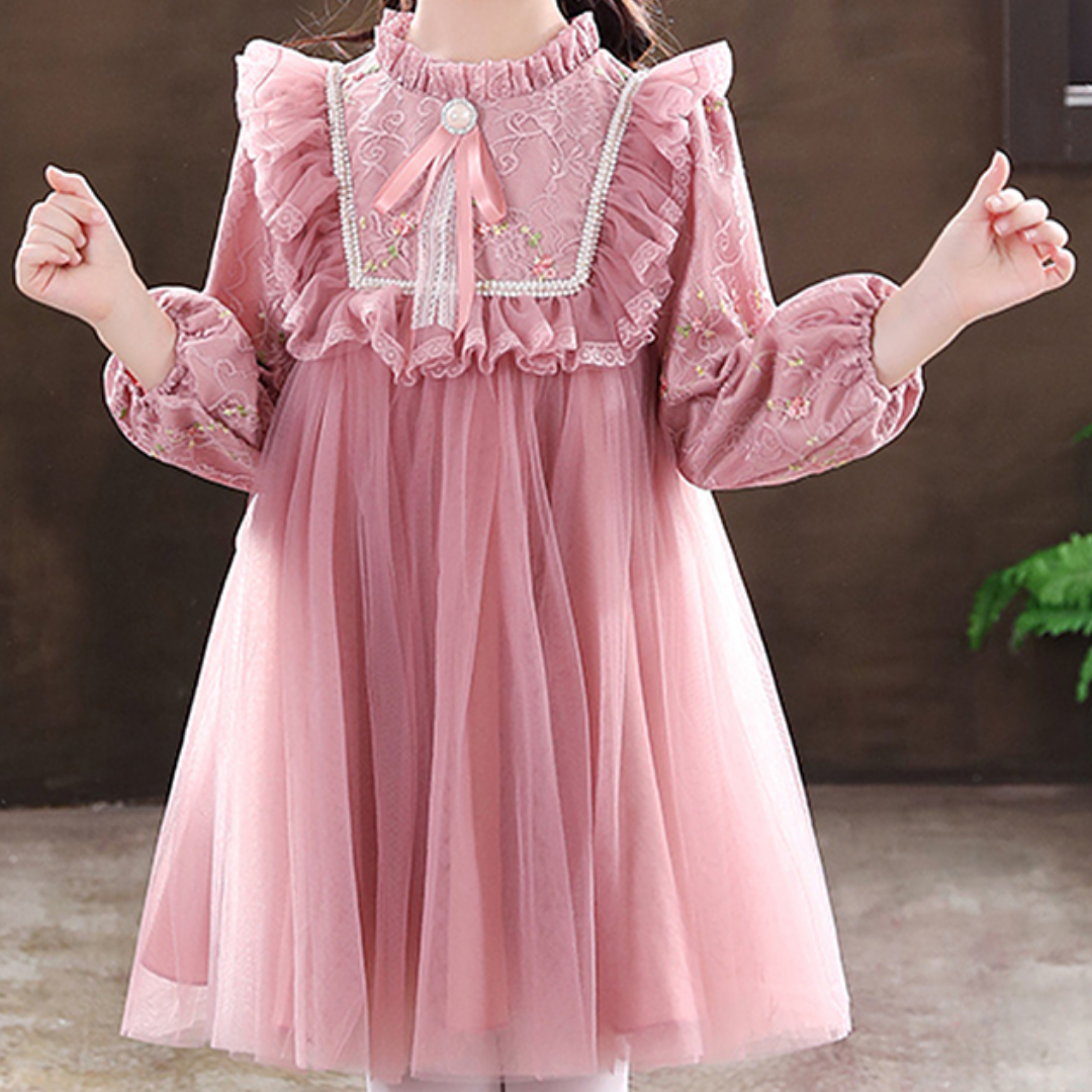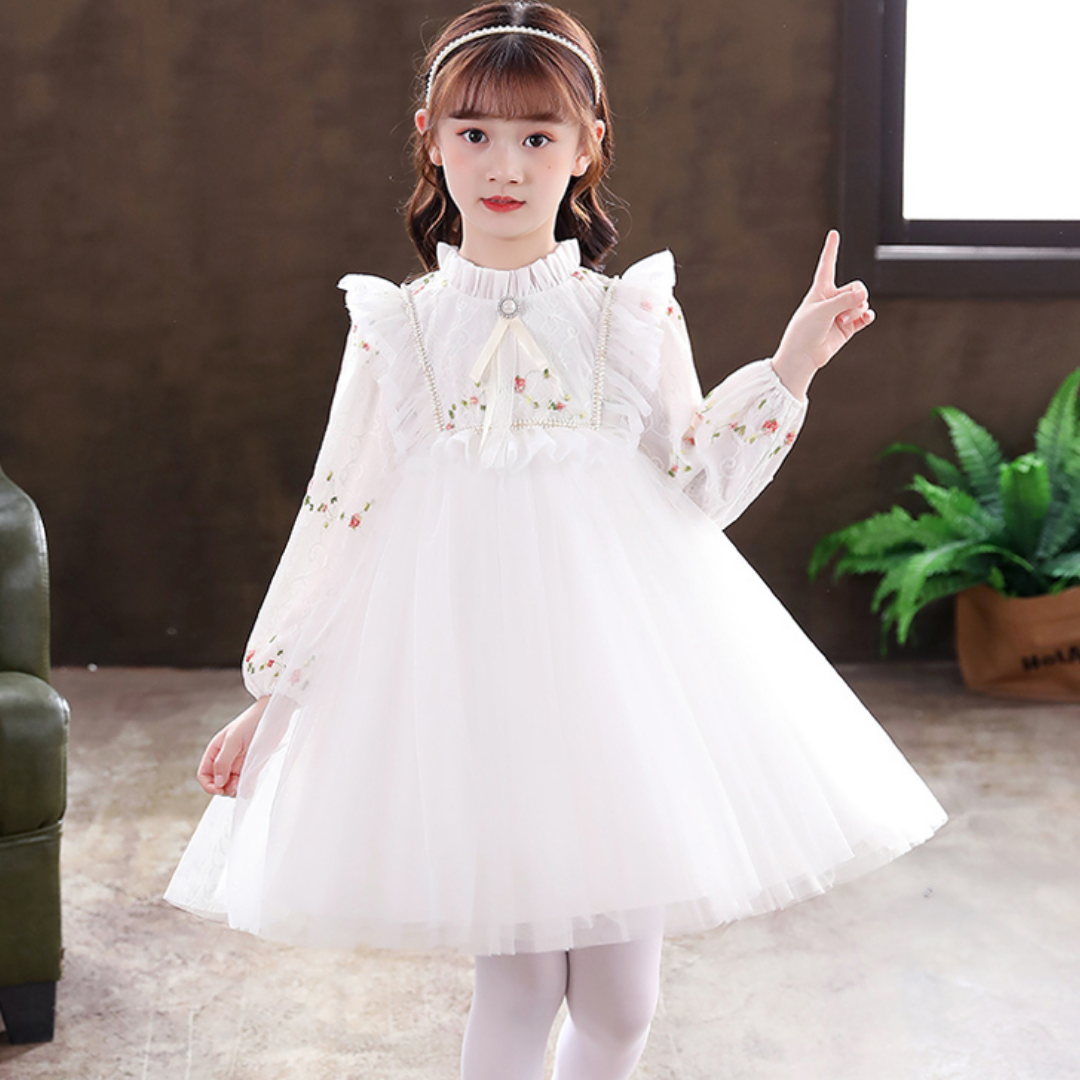 This Beaded Embroidered Knee-Length Doll-Up Princess Party Dress has an amazing design with beautiful beadwork and embroidered on the bodice. The skirt is made of a soft net, more comfortable for your kids to wear. This dress will make your girl feel like a princess at her next party or event!