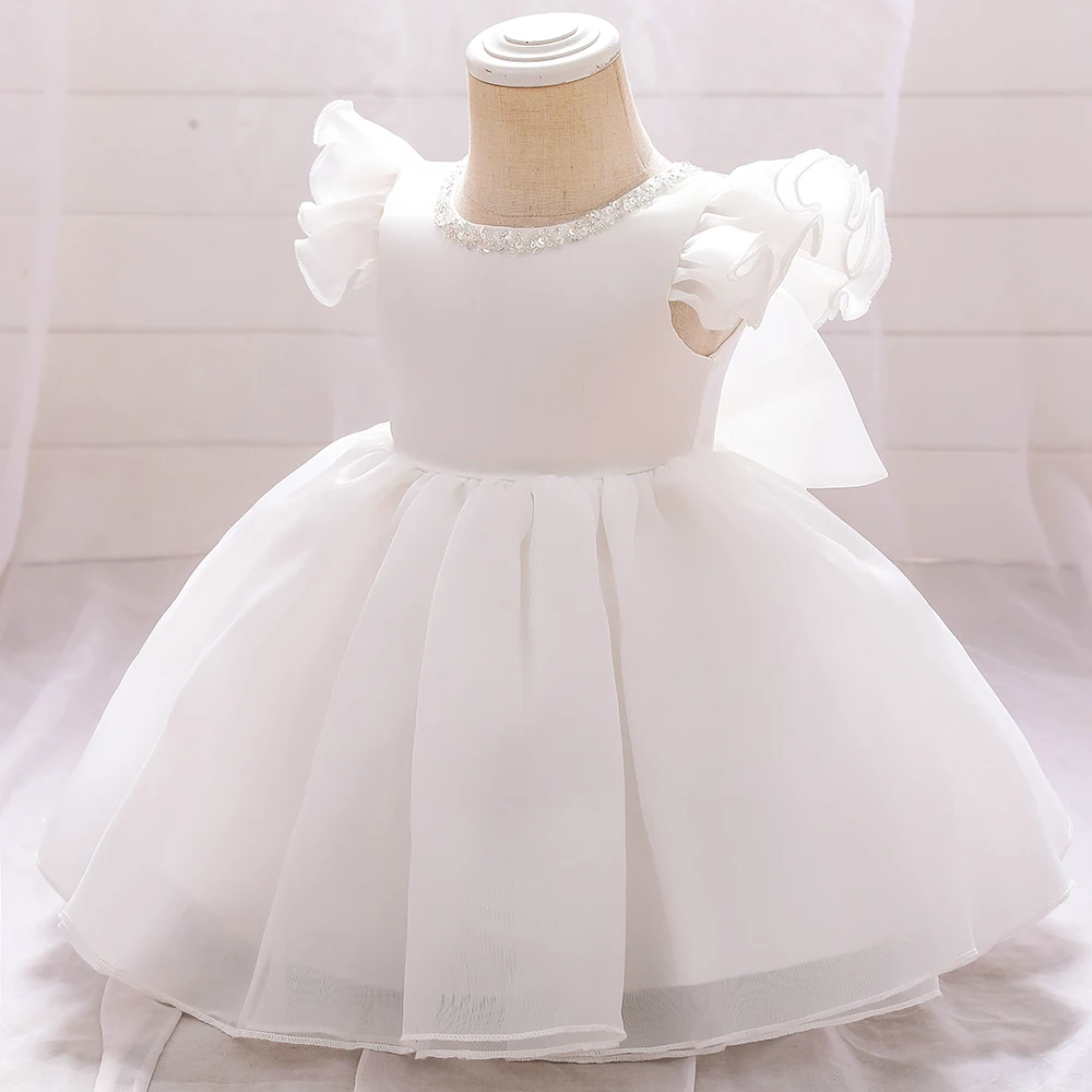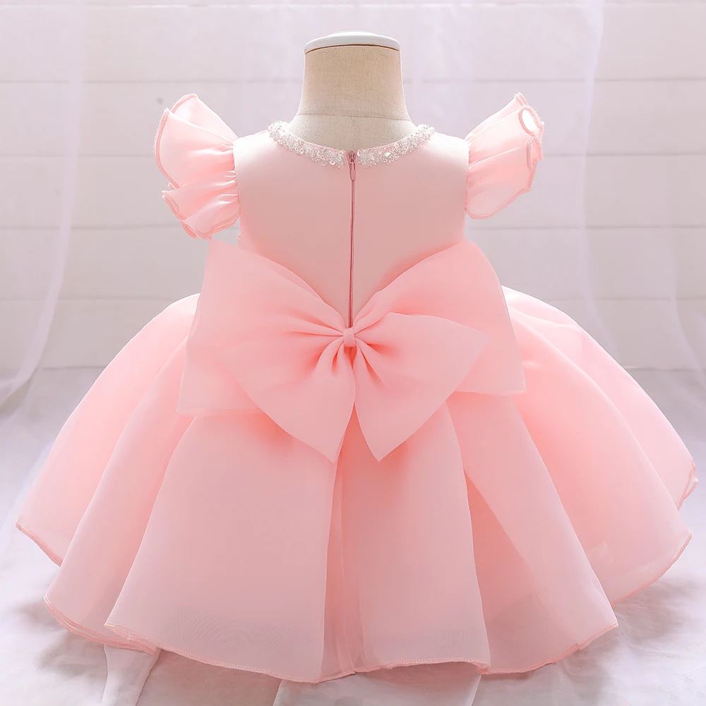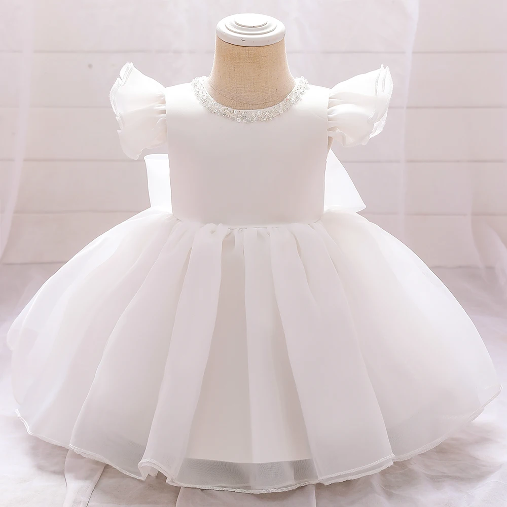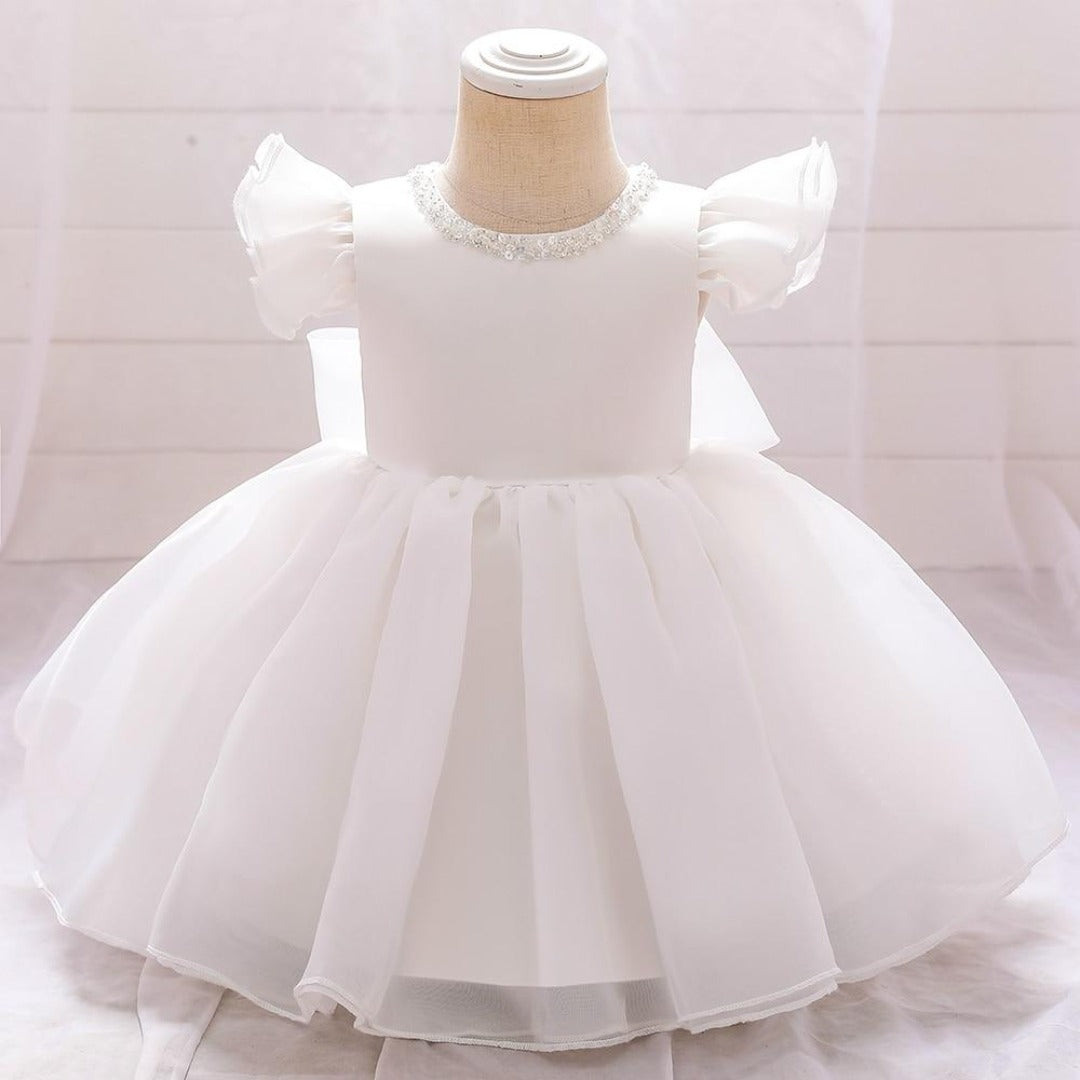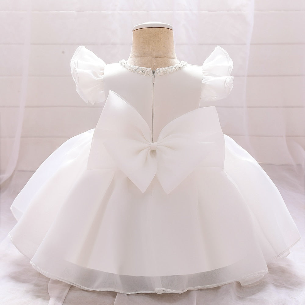 Beaded Neckline and Big Bow Baptismal Princess Ball Gown