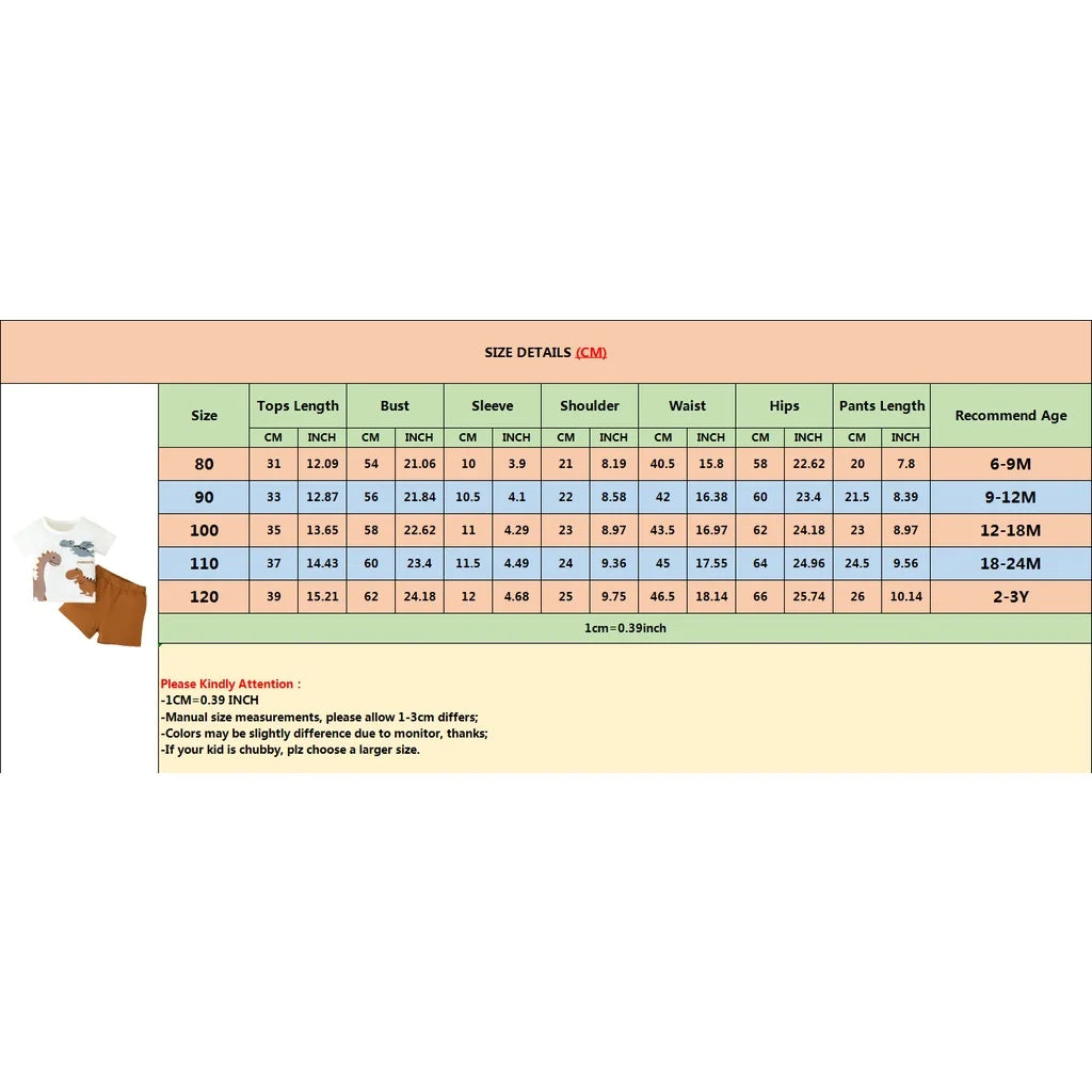 Perfect for Every Adventure: Our Infant Boy 2PCS Dinosaur Set is not just an outfit; it's an invitation to play and explore. Order now to dress your little one in a handsome and fashionable ensemble.