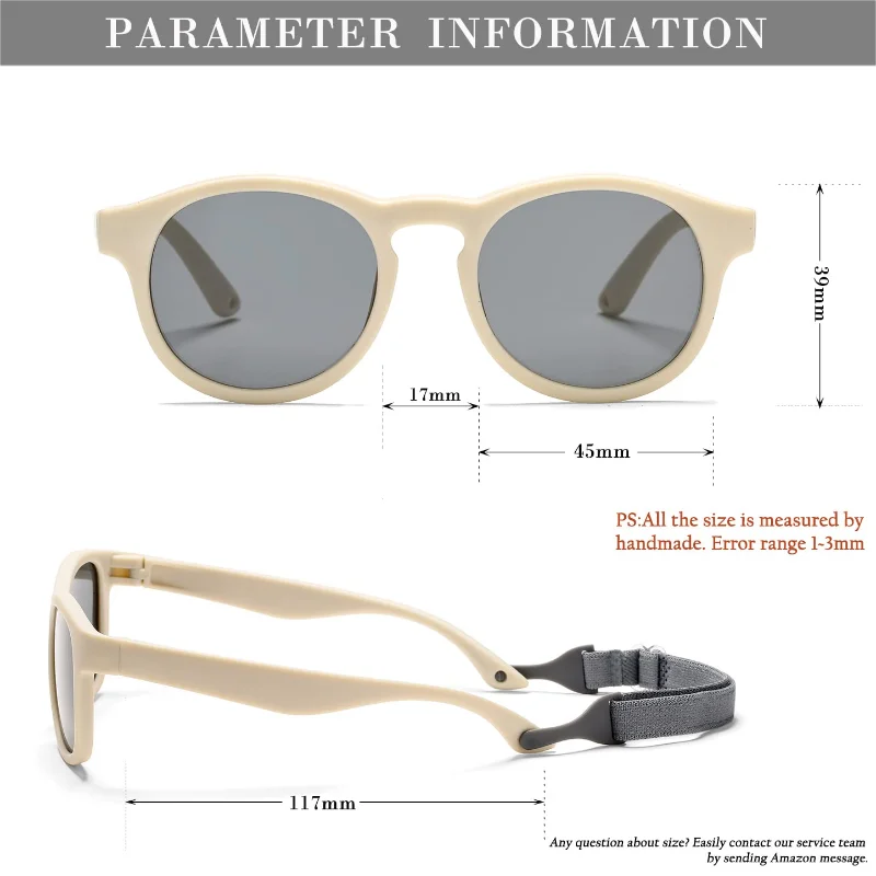 Keep your little one's eyes protected in style with our Infant Polarized Sunglasses. Designed specifically for babies, these sunglasses feature UV400 protection and polarized lenses to shield delicate eyes from harmful UV rays and harsh glare. With a fashionable round frame and durable TR-90 material, they're perfect for outdoor adventures, playtime, beach days, and more.