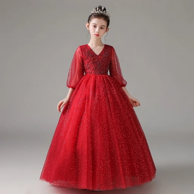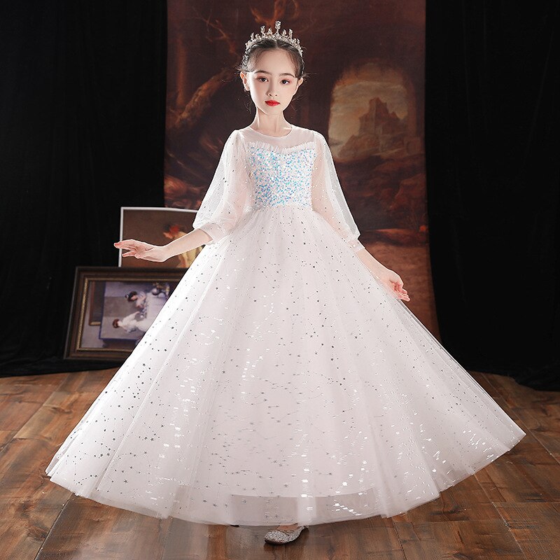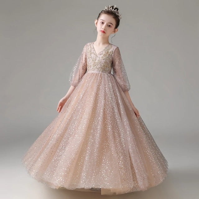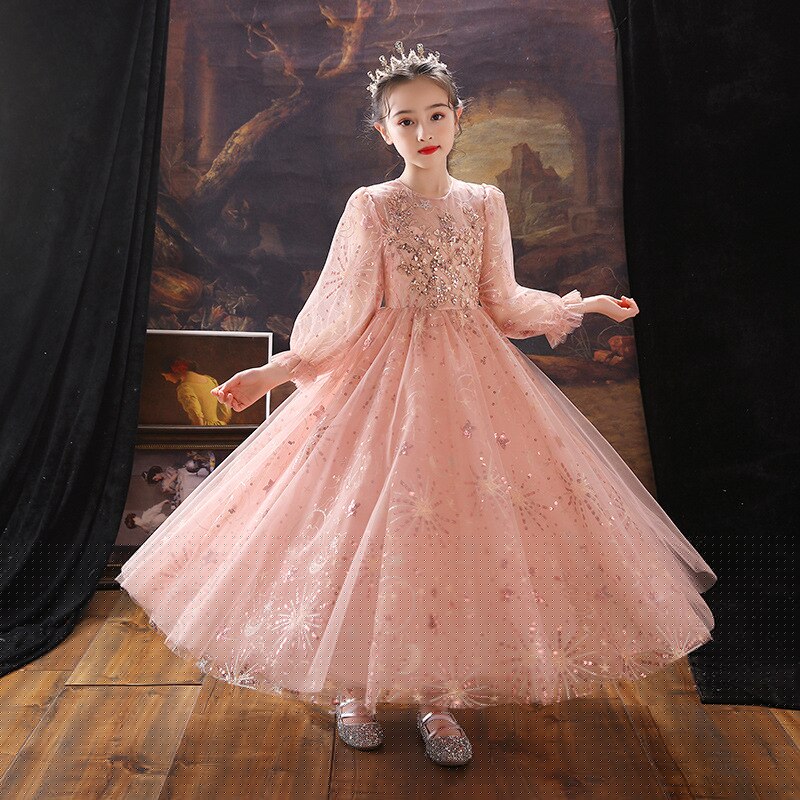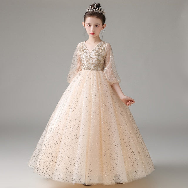 The epitome of elegance, a single light-colored gown like this Sequin Embroidery Detail A-line Long Gown will make your little girl stunningly beautiful in the crowd. Very comfortable formal fashion wear for a picture-perfect moment on special occasions like weddings, debuts, and the like.