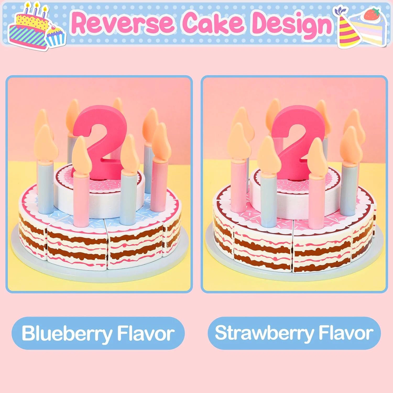 Wooden Birthday Cake & Tea Party Set – Montessori Pretend Play Food Toys for Kids, Educational Gift for Toddlers