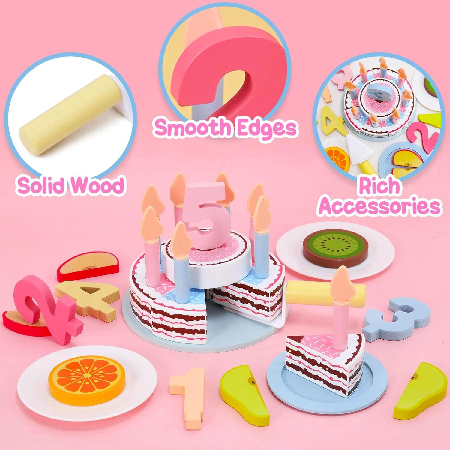 🎂 Wooden Birthday Cake Set Includes: