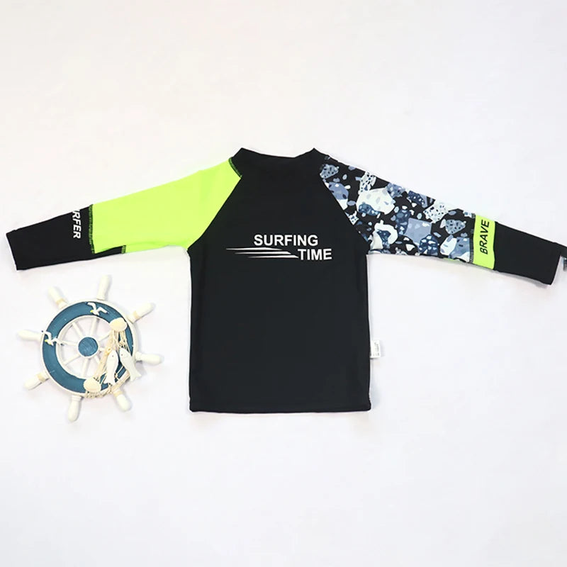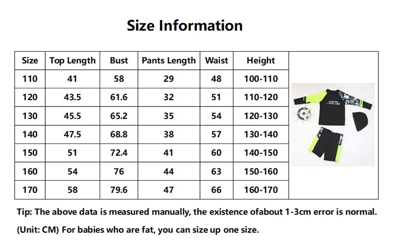 Designed with your child's comfort in mind, our swimsuit set features a pullover style with an O-neck collar for easy dressing and maximum comfort. The full sleeve design provides added coverage and protection without sacrificing mobility.