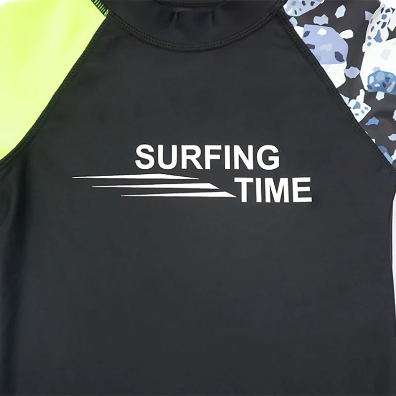 With a stylish letter pattern design, this swimsuit set is as fashionable as it is functional. Your little boy will look cool and confident while staying safe from the sun's harmful rays.