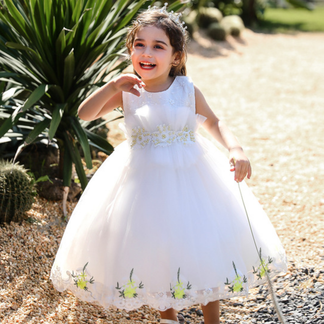 Floral and lace appliques are popular fashion choices when it comes to party dresses. This Embroidery Lace and Floral Appliques Princess Party Dress is a good option that small princesses will love wearing at their next big event. The dress is not only comfortable and soft, but it's also lightweight and easy to wear for extended periods of time.