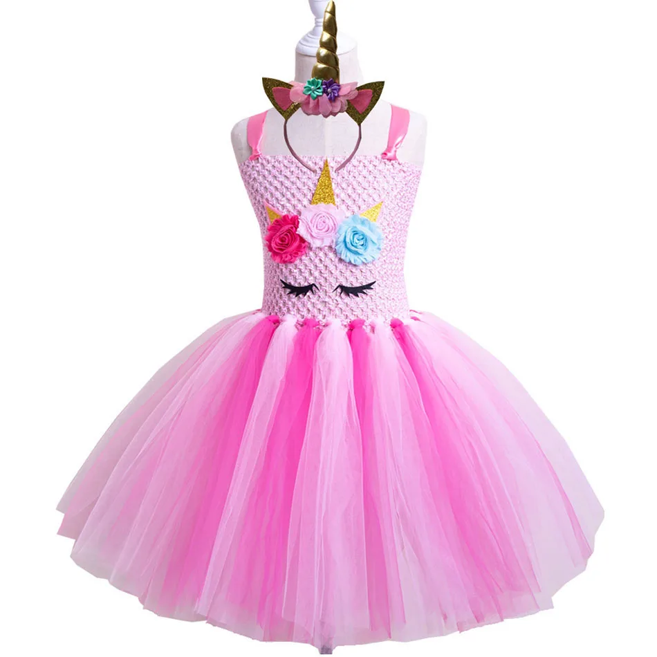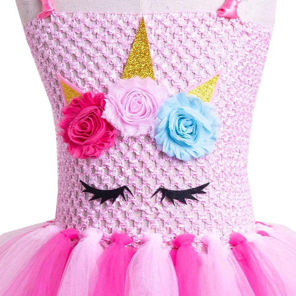 Glowing LED Light Unicorn Girls Party Tulle Dress