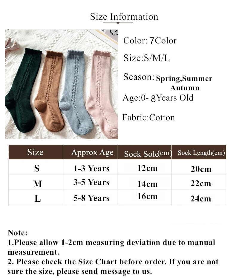 - Size S: 1-3 years, Sock Length: 12-20cm