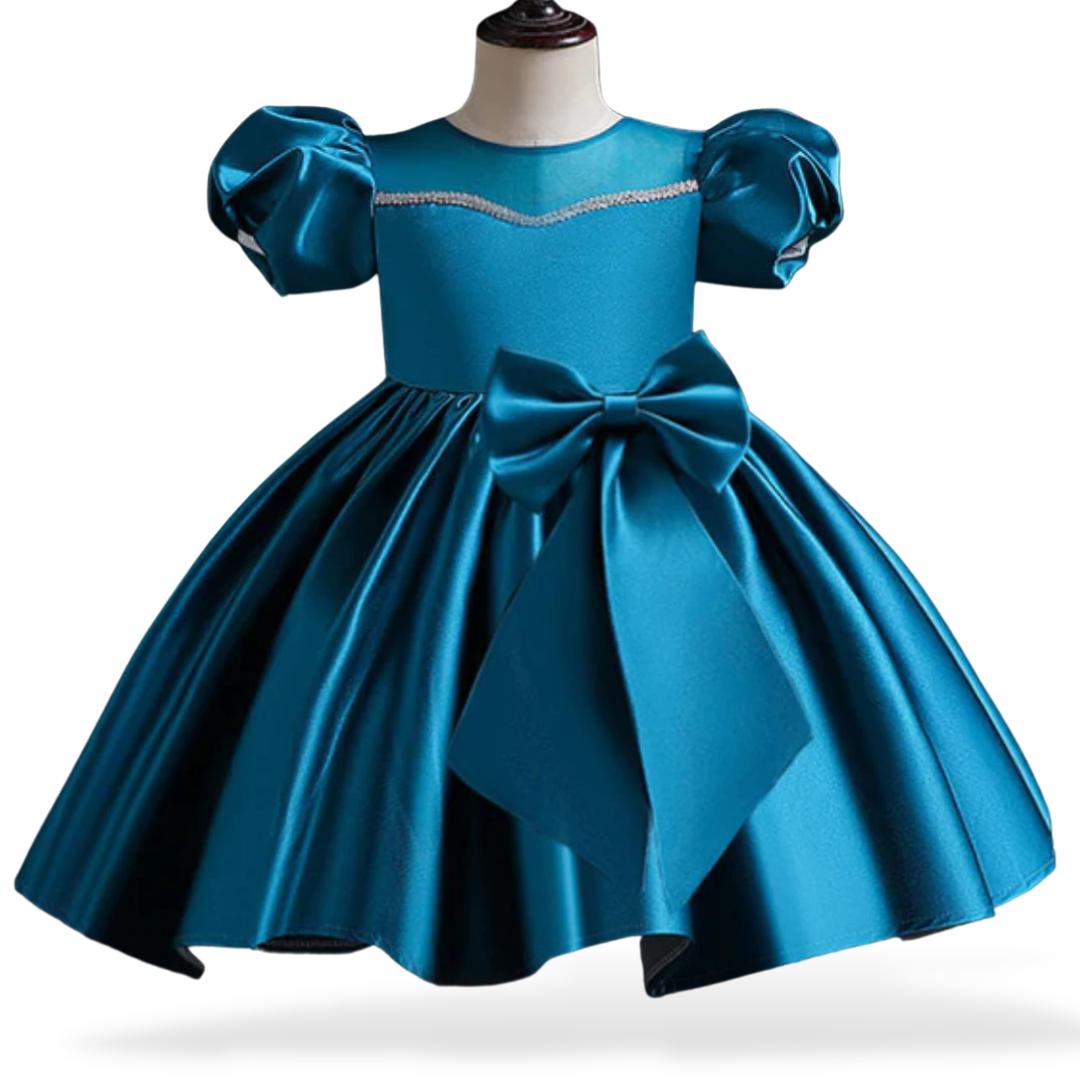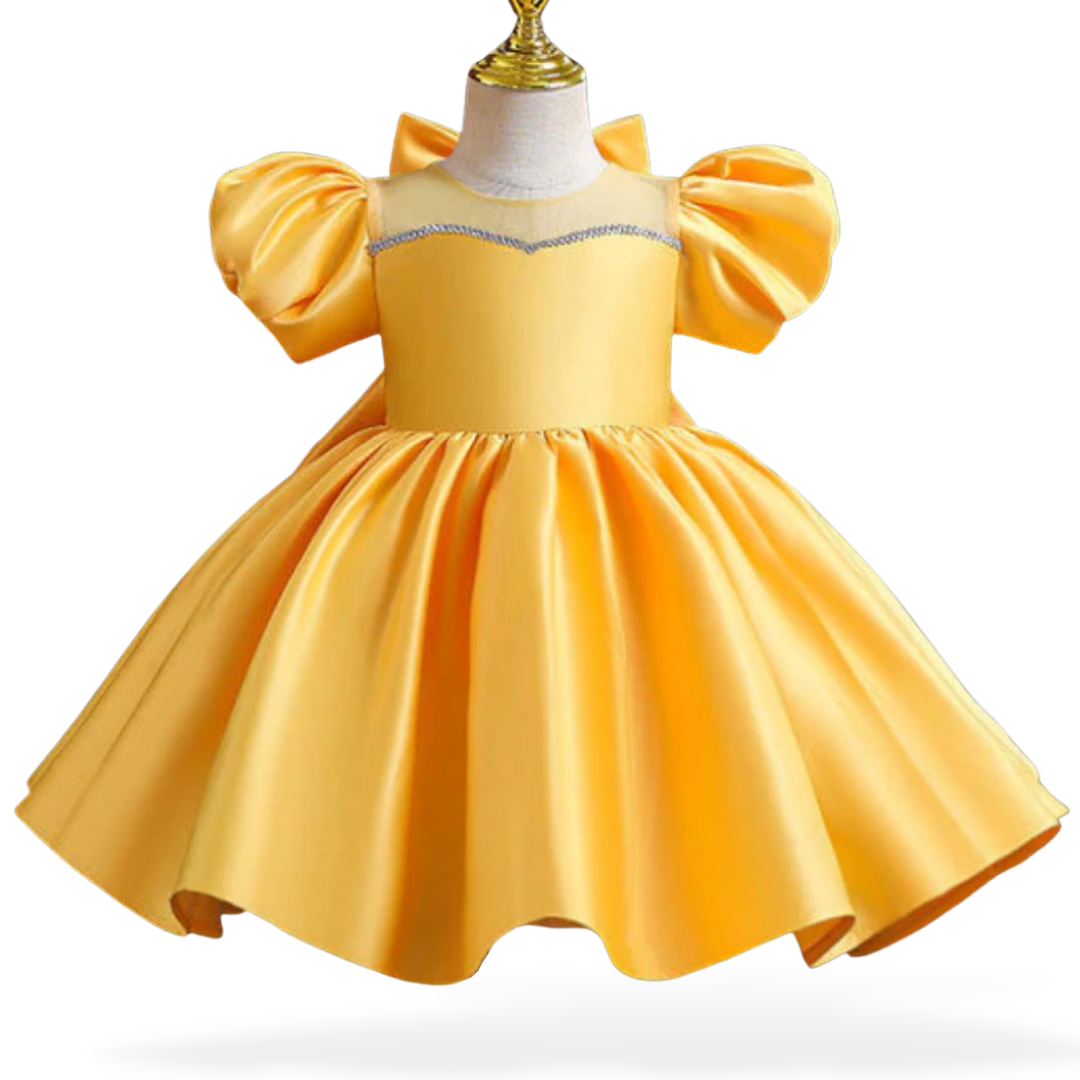 Get your little girl's outfit up to date with this Puff Sleeves and Ribbon Bow Design Wedding Flower Girl Dress. The dress is fluffy and impressive to get adored and turn heads in the crowds!