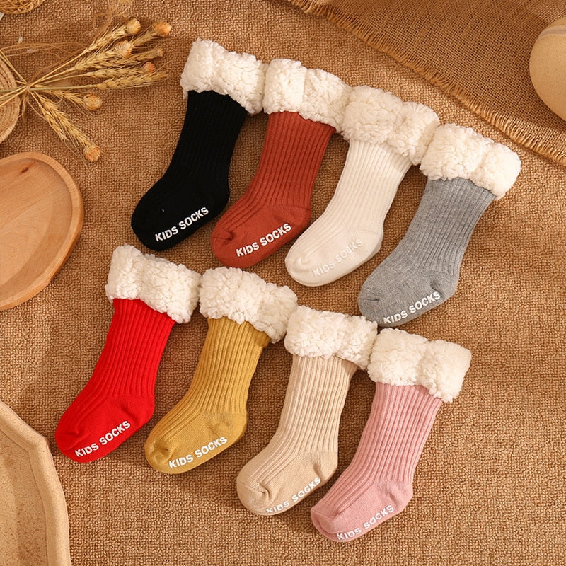 With a simple design and trendy colors, this model is so pretty, moms! It's cold in winter, but with cute socks like this, I just want to stay cold forever. Thick cotton socks for babies to change shoes, both soft and anti-slip, extremely safe!