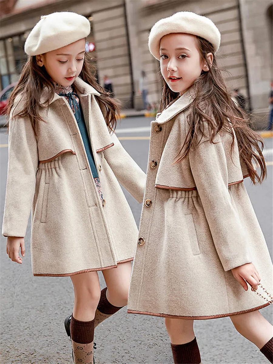 Turn Down Collar Wool Trench Coat