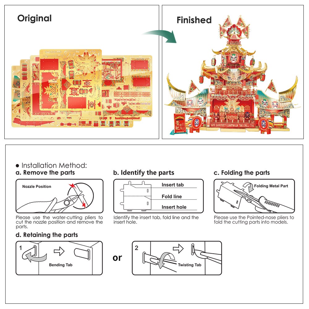 Ancient Theatrical Stage 3D Assembled Metal Model simulates the place where Chinese plays are shown. Let's follow the history to learn more about the culture and people of the people in ancient China through this model.