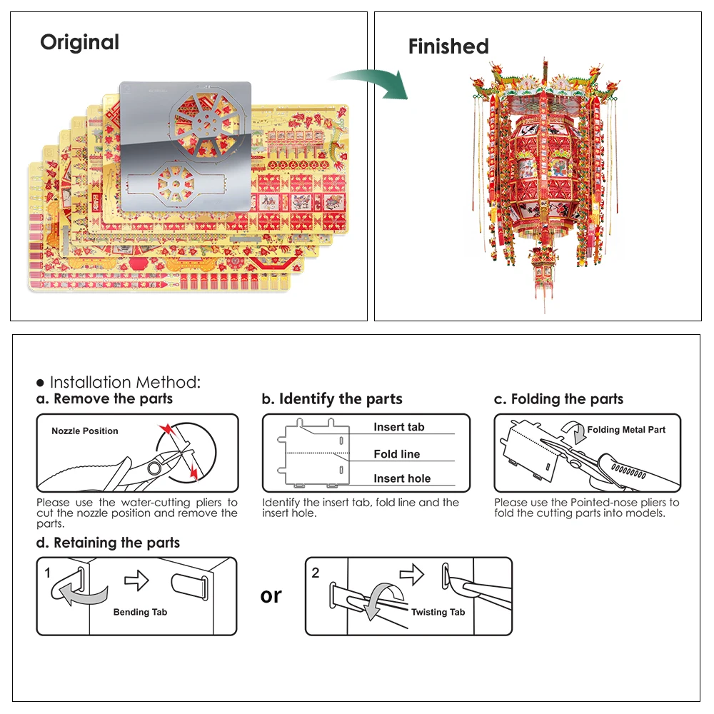One Thousand Angle Lantern 3D Assemble Metal Model simulates contemporary Chinese imperial lanterns. An indispensable item at that time. Have a good time assembling this model.