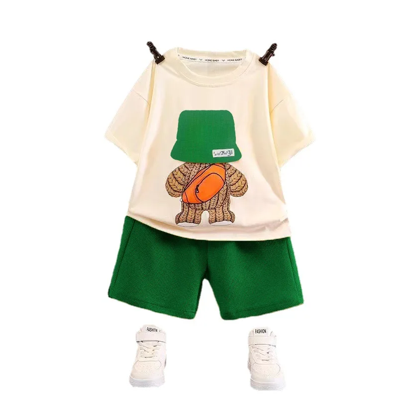 Introducing Our Boys Bear Print Sport Suits: Casual Summer Clothing