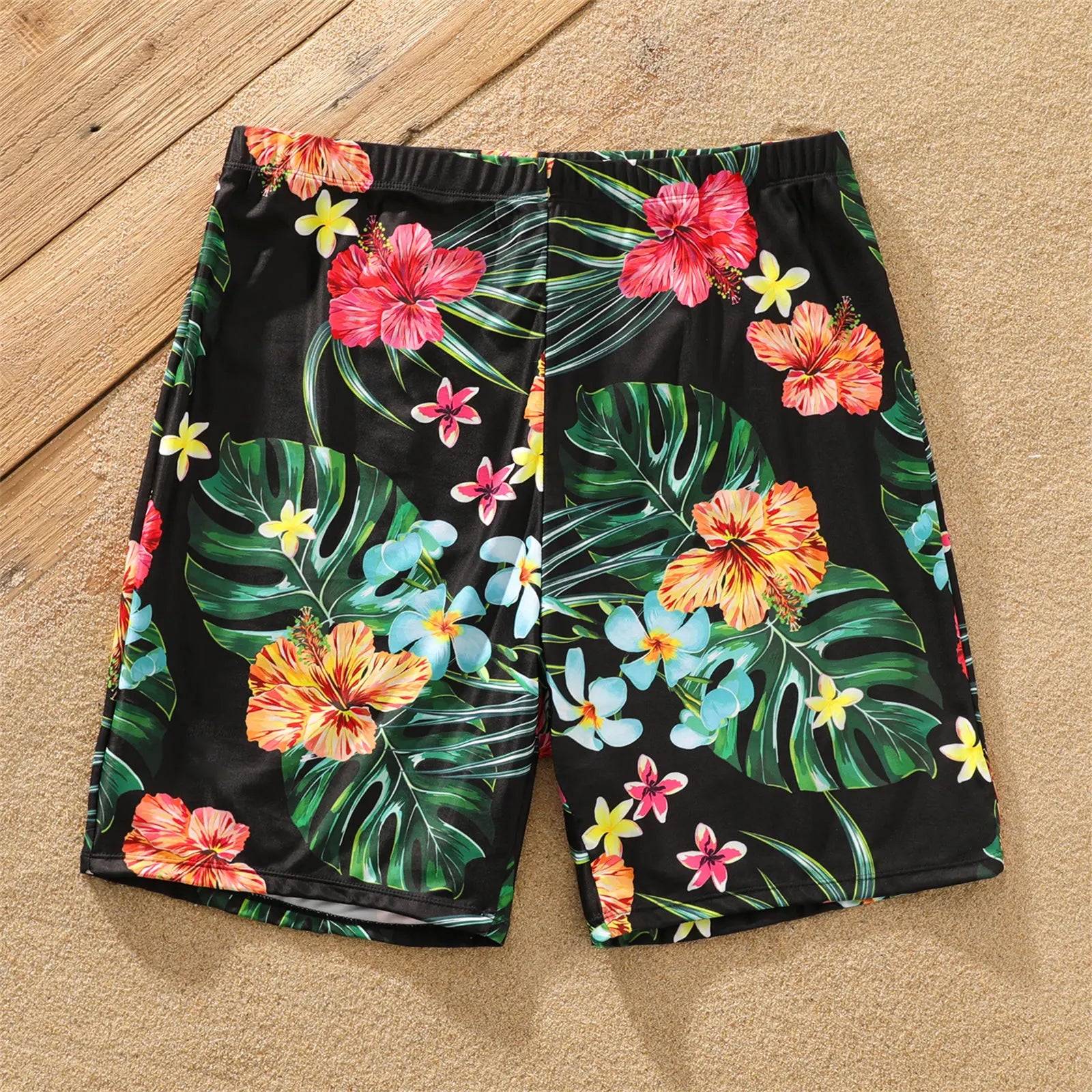 Coconut Tree Print Family Matching Swimwear: Shorts & One-Piece Suit