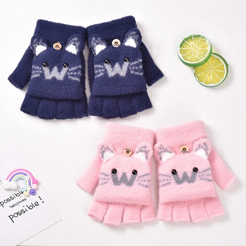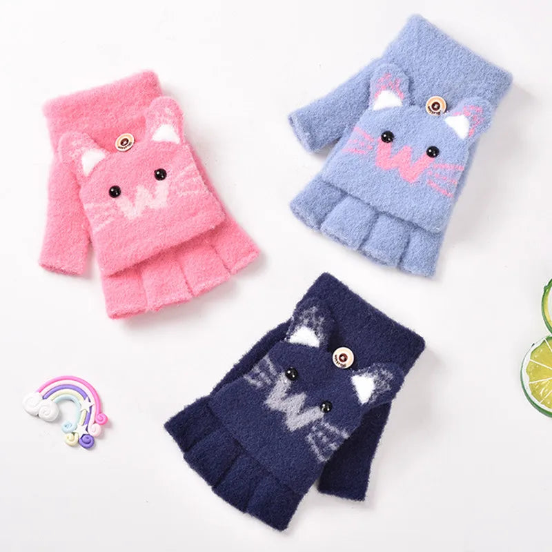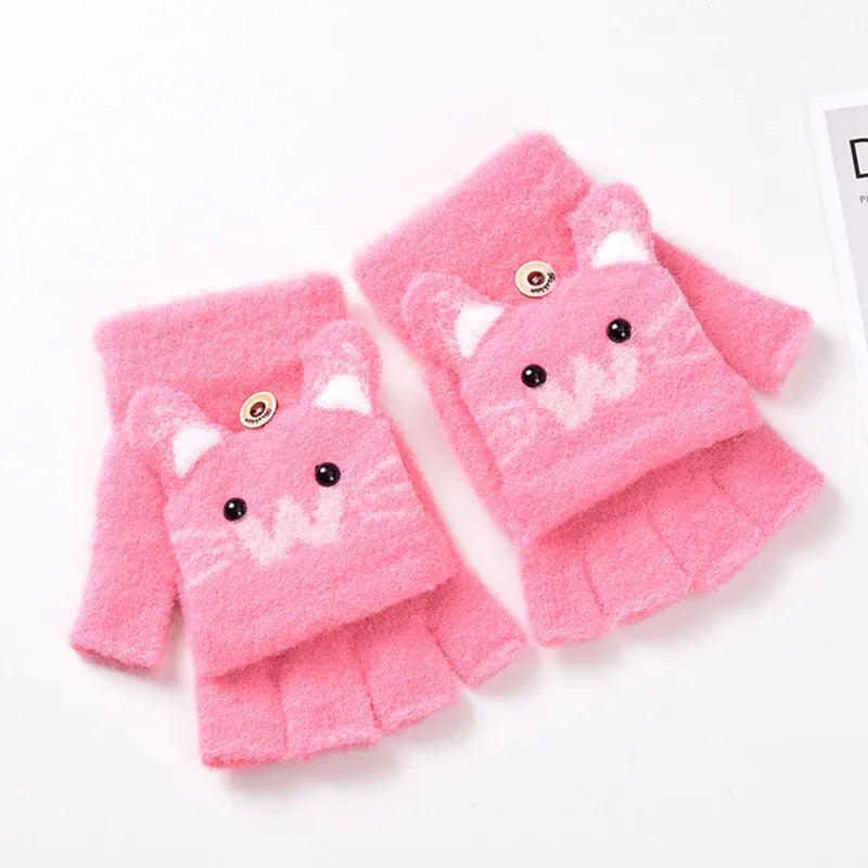 Cute Winter Gloves - Warm Faux Fur Knit for Kids