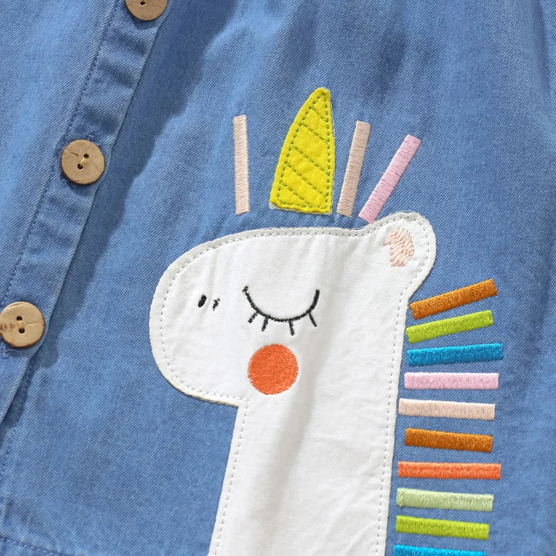 Don't miss out on the opportunity to dress your girl in the most adorable summer outfit. Shop our Denim Unicorn Sleeveless Dress today and let her sparkle and shine all season long.