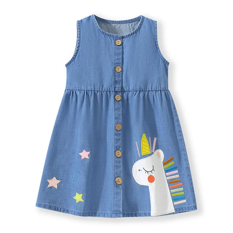 Introducing Our Magical Denim Unicorn Sleeveless Dress for Girls